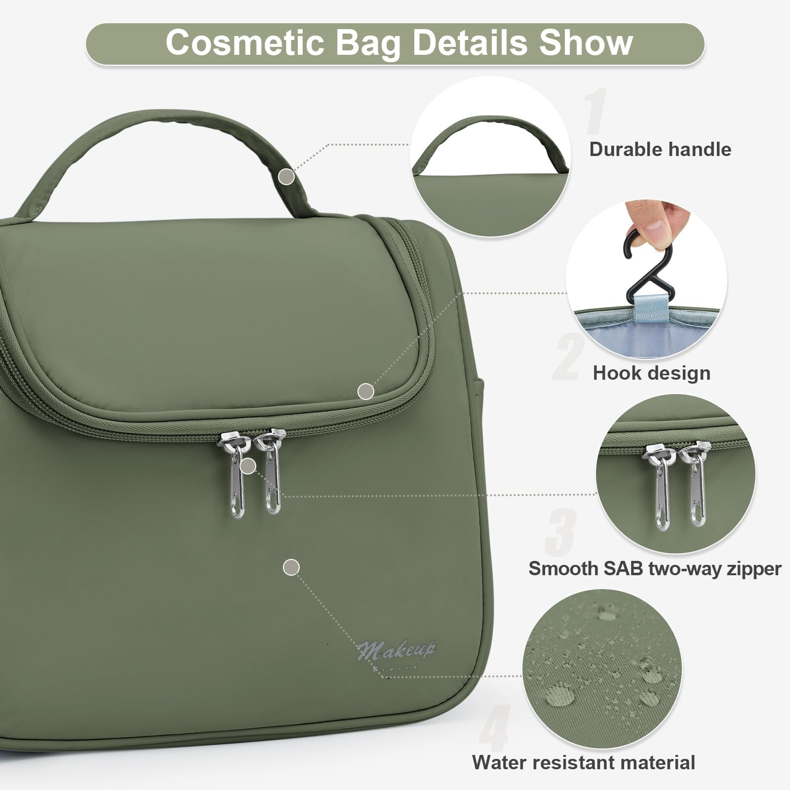 Travel Toiletry Bag for Women, Large Wide-open Travel Bag for Toiletries, Water-resistant Cosmetic Bag Makeup Organizer Travel Essential for Toiletries Accessories with Handle Product Details Color: Green Brand: HYC00 MPN: Does not apply UPC: Does not apply EAN: Does not apply Material Features: Water resistant Material Type: Nylon Item Weight: 0.2 Kilograms Item Dimensions L x W x H: 9.44"L x 4.33"W x 8.66"H Target Audience: Women Manufacturer: HYC00 Brand Name: HYC00 Age Range Description: Adult Recommended Uses For Product: Toiletry, Makeup Pattern: Solid Color: Green Water Resistance Level: Water Resistant Closure Type: Zipper Large Capacity Toiletry Bag- Sise: 9.5 x 8.7 x 4.3 inch.The skincare bag can store various toiletries and cosmetics ,such as make-up, cosmetic brushes,skincare products, shampoo, toothbrush, toothpaste and so on, make your travel comfortably to have all your necessities in one place. Keep Everything Organized- 1 large main compartment and Multiple internal mesh pockets are designed to organize your 2-3 travel toiletries. Back zipper pocket can store some small items. The make up bag is suitable for your family trip to pack travel toiletries. Hanging Travel Toiletry Bag-The attached hanging hook lets you hang the toiletries travel bag on the bathroom door, shower rod or towel rack for fast access to your toiletries, as well as storing your travel case when you travel. The toiletry bag is designed with two-way zipper closure for quick access and carry handle doubles as its hanging strap or hang bag. Multi-occasion & Multi-function-The makeup bag can as a toiletry bag, shaving kit, makeup bag, cosmetic bag, travel accessories,travel size toiletries all in one. It's a great choice for weekend trips,business trips, travel, gym, home use and more, also a great Birthday/Thanksgiving/Christmas gift to friends/family. What You Get-HYC00 travel cosmetic bag/makeup travel bag, our worry-free Lifetime warranty, 60-day no-questions-asked refund and friendly customer service. ①Large Capacity Toiletry Bag- Sise: 9.5 x 8.7 x 4.3 inch.The skincare bag can store various toiletries and cosmetics ,such as make-up, cosmetic brushes,skincare products, shampoo, toothbrush, toothpaste and so on, make your travel comfortably to have all your necessities in one place. ②Keep Everything Organized- 1 large main compartment and Multiple internal mesh pockets are designed to organize your 2-3 travel toiletries. Back zipper pocket can store some small items. The make up bag is suitable for your family trip to pack travel toiletries. ③Hanging Travel Toiletry Bag-The attached hanging hook lets you hang the toiletries travel bag on the bathroom door, shower rod or towel rack for fast access to your toiletries, as well as storing your travel case when you travel. The toiletry bag is designed with two-way zipper closure for quick access and carry handle doubles as its hanging strap or hang bag. ④Multi-occasion & Multi-function-The makeup bag can as a toiletry bag, shaving kit, makeup bag, cosmetic bag, travel accessories,travel size toiletries all in one. It's a great choice for weekend trips,business trips, travel, gym, home use and more, also a great Birthday/Thanksgiving/Christmas gift to friends/family. ⑤What You Get-HYC00 travel cosmetic bag/makeup travel bag, our worry-free Lifetime warranty, 60-day no-questions-asked refund and friendly customer service.