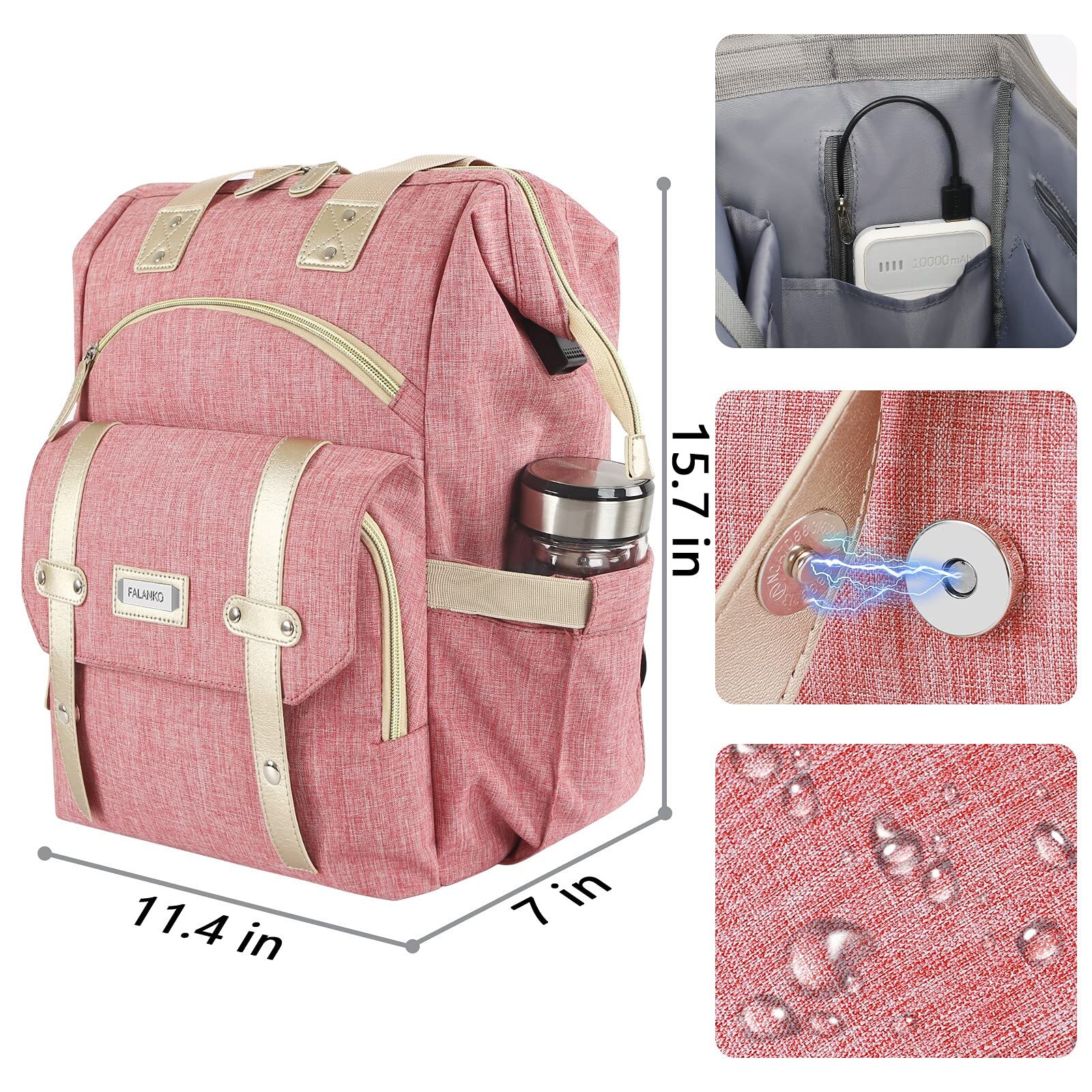 Backpack for Women,Wide Open Work Large USB Charging Port Student Bookbag for 15.6 Inch Laptop,Doctor Teacher Nurse College School Travel Bag Description and features Large backpack for women : 11.4"x 7"x 15.7" (length x width x height), capacity: 20L. Sturdy Water Resistant and environmentally friendly fabric, sturdy metal zipper. Work travel design, can accommodate everything you need,Pink color women laptop backpack, college school student backpack for girls, convertible tote backpack , backpack purse for women, work laptop backpack etc. The great backpacks for birthdays and holidays Multi-function Women Backpack:2 front pocket, 4 inner small pocket,2 outside pockets, 1 Main Pockets,1 Laptop Compartment with padded for 15.6inch Laptop, 1 iPad pocket,1 Interior Zipper Pocket, Spacious Backpack with Anti-theft zipper in back and steel frame of the main compartment keep the nice shape of the bag and sturdy of usage. Padded back panel and shoulder strap provide comfortable carry,Padded back panel and adjustable shoulder straps, provide comfort carrying WIDE OPEN DESIGN: Tote backpack for women can easy access doctor bag-style opening, This travel laptop backpack has a rectangular frame to keep the mount large, providing visible and easy access to the items at the bottom. No more digging. It can be wide-open 7.8" width. Reinforced edges and steel frame of the main compartment keep the shape of the bag CONVENIENT USB PORT DESIGN:The College Backpack for women with built in USB charger cable design and power bank pocket inside,great convenience for charging your electronic devices via connecting your own power bank. It offers an easy access to charge your phone when you are carrying a backpack on the road (POWER BANK is not included) RFID Blocking Secure Your Information: The front pocket of 15.6 inch Laptop backpack for women with advanced RFID security technology, unique metal composites, designed specifically to block RFID signals up to 13.56 MHz or higher, and protect your valuable information such as passport, credit cards, debit & ATM cards, driver's licenses, transit cards from unauthorized Scan Large Opening Design At your fingertips, not in a hurry. Do not mess with the pick and place. Easy to store and take. Large Capacity & Roomy Compartments INSIDE Pockets: 1 x Laptop Compartment with padded. Fit up to 15.6 inch. 1 x iPad Compartment with padded. - Wide opening from top and back 1 x Roomy Main Pockets. Keep daily stuff like binders,books,clothes etc. 1 x Pocket with zipper. Keep wallet/passport etc. 2 x Open Pocket . Keep phones,sunglasses and other small items. 2 x Side Pocket. Keep for small water bottle, cups, umbrella etc. OUTISIDE Pockets: 2 x Front Exterior Pocket 1 x Back Anti-theft zipper pocket. Return Policy ⦿ All our products come with a 30-Day Return Policy. If you would like to return your item and you are within 30 days of the purchase, and it is still in its original condition, you can return the item by contacting us through eBay messaging. ⦿ If you are not 100% satisfied, please let us know the Detailed Problem,We will give you a 100% satisfactory solution ⦿ If you received an incorrect, damaged, defective, or item not as described, contact us for a partial/full refund or replacement on our cost. ⦿ Free Shipping and Free Return 30-Days Money Back Guarantee. ☎ For all returned products, buyers MUST contact us for the returning address. Shipping ⦿ We do not ship to a different address. we will ship to the address you provide on the ebay only. Please check your address before purchase. ⦿ It should take 2-4 business days for the product to reach your destination. ⦿ If the product doesn't reach your destination within the time limit, please give it an additional 1-2 business days in case of postal delays and/or possible technical issues. ⦿ We use a selection of shipping services such as UPS, FedEx, USPS etc. ⦿ We ship only to the 48 contiguous states of America. We do not ship to Hawaii, Alaska, US Protectorates, APO/FPO addresses. Local pickups are not offered. ☎ If it takes any longer than that, please do not hesitate to contact us to resolve the issues. Contact us ☎ Please contact us via eBay message. And your message will be replied within 1 business days. For any queries, please feel free to contact us, we will get back to you as quickly as possible. Customer 100% satisfaction is our first priority and goal. We are always working hard for maintain high standards of excellence and resolve your problem in best way. So your POSITIVE FEEDBACK is very important. If you have any problem of the item, please feel free to let us know before leaving your feedback. We will try our best to solve your problem. About us We are here to give you quality products, competitive pricing and amazing service in order to make sure you get the best deal online, Thank you for your business and the opportunity to serve you.