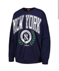 This is a Women's New York Yankees Mitchell & Ness Navy Logo Pullover Sweat Shirt in size Small. It is officially licensed fan apparel for Major League Baseball (MLB) featuring the New York Yankees team logo. The sweatshirt is designed for women and is perfect for showing team support during baseball season.