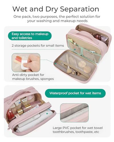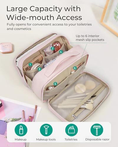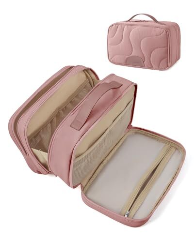 This toiletry bag is a game-changer for travel! The spacious main compartment fits all my essentials, and the multiple pockets keep everything organized. The water-resistant material is durable, and the cute pink color adds a nice touch. Love the sturdy handle for easy carrying—perfect for trips! Fast shipping and great seller too. Highly recommend!