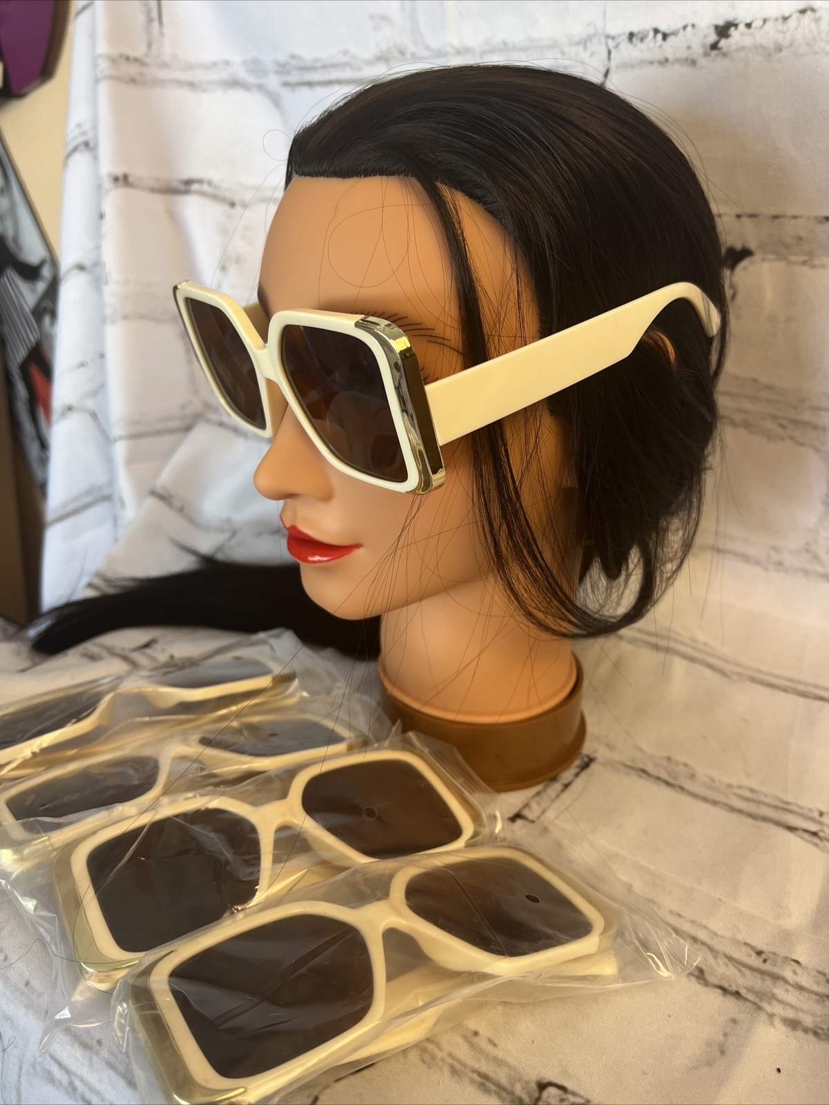 Elevate your summer style with these extra-large square frame sunglasses. The tinted lenses provide ample protection from the sun while the brown hue adds a touch of classic sophistication. Made from high-quality plastic, these oversized sunglasses feature a beige frame color that adds a subtle pop to any outfit. Perfect for women who love retro and classic themes, these sunglasses are a must-have accessory. With five units available, you can share them with your friends or keep them all to yourself. Stay chic and stylish all summer long with these statement sunglasses.