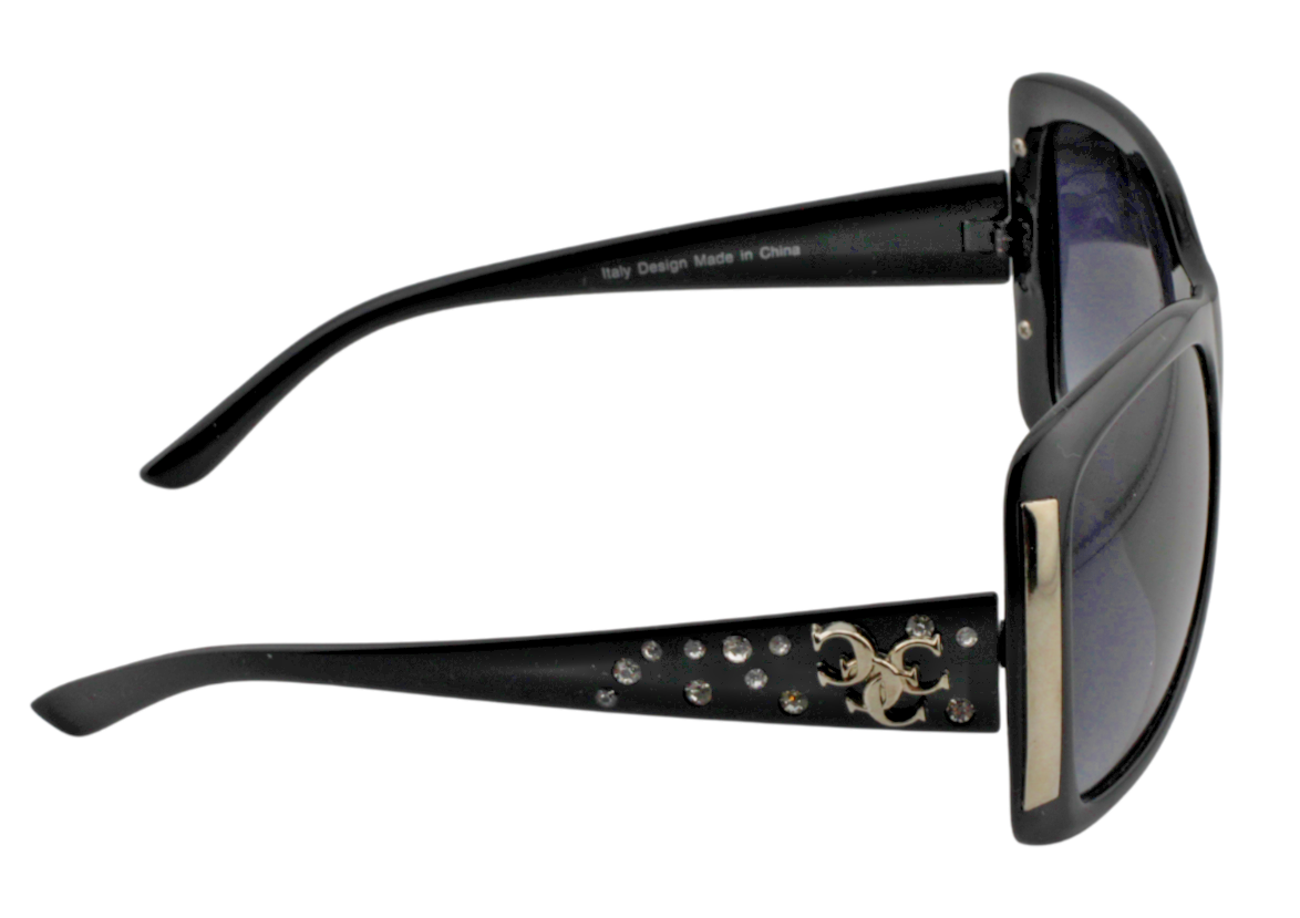 Elevate your style with these glamorous sunglasses that feature oversized lavender gradient lenses and rhinestone accents on a sleek black plastic frame with silver details. There is an overlapping "C" design at the temple. Perfect for any occasion, these shield-style sunglasses evoke a sense of classic 80s and 90s retro fashion with a modern twist. Whether you're hitting the beach, cruising on your motorcycle, or just hanging out with friends, these shades offer UV400 protection and lightweight comfort with a temple length of 120mm. Add some fun to your wardrobe with these personalized sunglasses that cater to a variety of themes such as movie, rock, and outdoor activities. These sunglasses are the perfect accessory for any fashion-forward unisex adult.