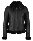 Women's RAF B3 Bomber Aviator Genuine Leather Black Sheepskin Jacket Fur Coat