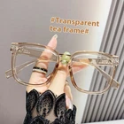 Product information: Frame color: beige frame, bright black frame, hawksbill frame, transparent tea frame, transparent gray frame Lens color: Anti-blue light Glasses structure: full rim frame Lens Material: AC Size: Packing list: Plastic women's sunglasses * 1 Product Image: