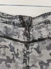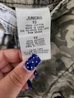 This vintage Y2k mini denim camo grunge skirt in size 13 features a camouflage pattern in multicolor with a button and zipper closure. Made from a cotton blend denim fabric, this skirt has a short length and a junior size type. The army and grunge themes of this skirt make it a unique addition to any teen's wardrobe, with added features like pockets for added style and functionality.