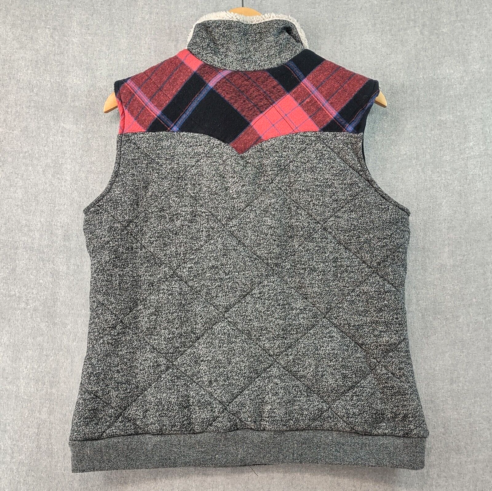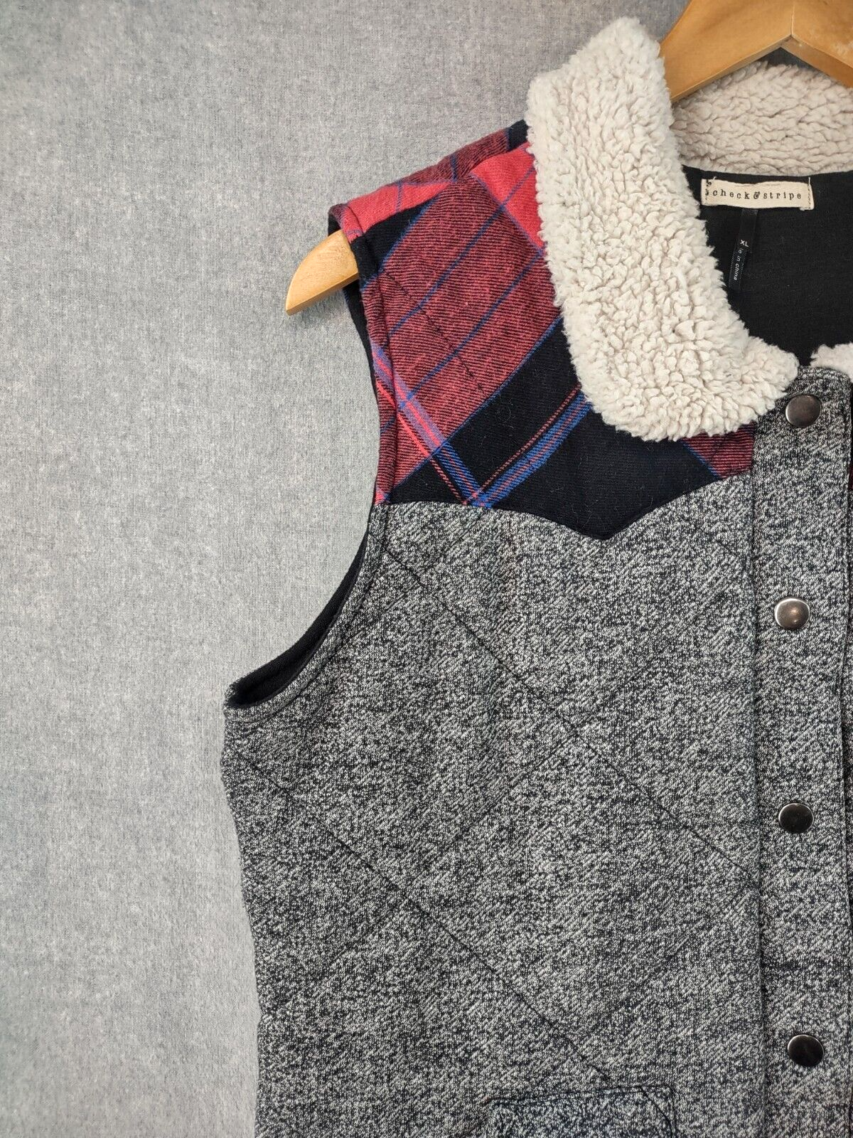 Welcome to Aspen Crossing, your destination for modern western bohemian style reflecting the rugged beauty of our American West. Check & Stripe Vest Womens Extra Large Quilted Knit Sherpa Collar Snap Front Pockets Outdoor 24" LENGTH: Measured from the top of the shoulder to the hem. 20.2" CHEST WIDTH: Underarm to underarm, measured flat from left to right. Sleeveless It is always best to compare the measurements above with a top that fits you comfortably. CONDITION - Excellent pre-owned condition. All items are cleaned per EBAY standards. See the photo gallery to view this items measurements and condition. SHIPPED - USPS First Class Mail unless item weight requires priority mail. RETURNS accepted, must be returned within 30 days in original condition to receive a full refund. SHIPPING AND HANDLING We ship all packages within five business days Monday through Friday except Holidays. Consolidated shipping is available for multiple purchases. Thank you for helping our planet and buying previously owned and loved items. I am grateful for your business. Enjoy! Check out our eBay store and follow us. There are new listings daily. CUSTOM SKU: 2855 Disclaimer: While we make every effort to capture the most accurate depiction of every item when photographing, colors may vary from screen display to in person therefore we cannot guarantee exact shade on any item. Message us if you have questions.