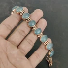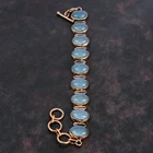 Note : Due to the natural formation of this gemstone. Slight variation in design and color are to be expected. Welcome to Silver Creation Womens day Sale Copper Oval Natural Aquamarine Sister Bezel Engagement Bracelet Handmade Bracelet, Wire Wrapped Bracelet, Wire Wrapped Jewelry, Copper Pendant, Copper Wire Bracelet, Wrapped Jewelry, Wire Wrap Bracelet, Wire Wrap Jewelry SKU : VFWB-49 Stone Shape : Oval Metal Purity : Unknown Copper Length : 6 $Bracelet Unit$ Width : $Bracelet Unit$ Copper has been used for jewelry making for thousands of years, dating back to ancient civilizations such as the Egyptians, Romans, and Aztecs. Copper was valued for its beauty, versatility, and durability, and was often used to make everything from jewelry and coins to cookware and tools. In addition to its historical significance, copper jewelry also offers several benefits. Copper is a natural conductor of heat and electricity, which makes it ideal for energy healing and therapeutic purposes. Wearing copper jewelry is believed to have various health benefits, such as improving circulation, reducing inflammation, and boosting the immune system. Some people also believe that copper jewelry has the ability to balance energy and improve mood. For Mother's Day Gift For Father's Day Gift For Promise For Valentine' Day For Halloween Party For Christmas Day Gift For New Year Party For Mom For Her If you can't find the information you need or need some advice for your design? Feel free to contact us. We are fast to reply :) All our work is made by hand with Love and Care in our workshop Thank you so much for visiting and hope you enjoy shopping with us Silvercreations is committed to delivering the best quality sterling silver jewelry to customers. As a handmade jewelry manufacturer, we offer an extensive selection of copper gemstone jewelry that showcases the brilliance of our craftsmanship. We are an experienced handmade jewelry supplier with expertise in embellishing gemstones to suit every style. We offer you the liberty to create your jewelry ensemble with sparkling, earthy, and pure gemstones. Our Talented artisans masterfully handcraft each piece of jewelry you see here. Our pieces are made with genuine gemstones.
