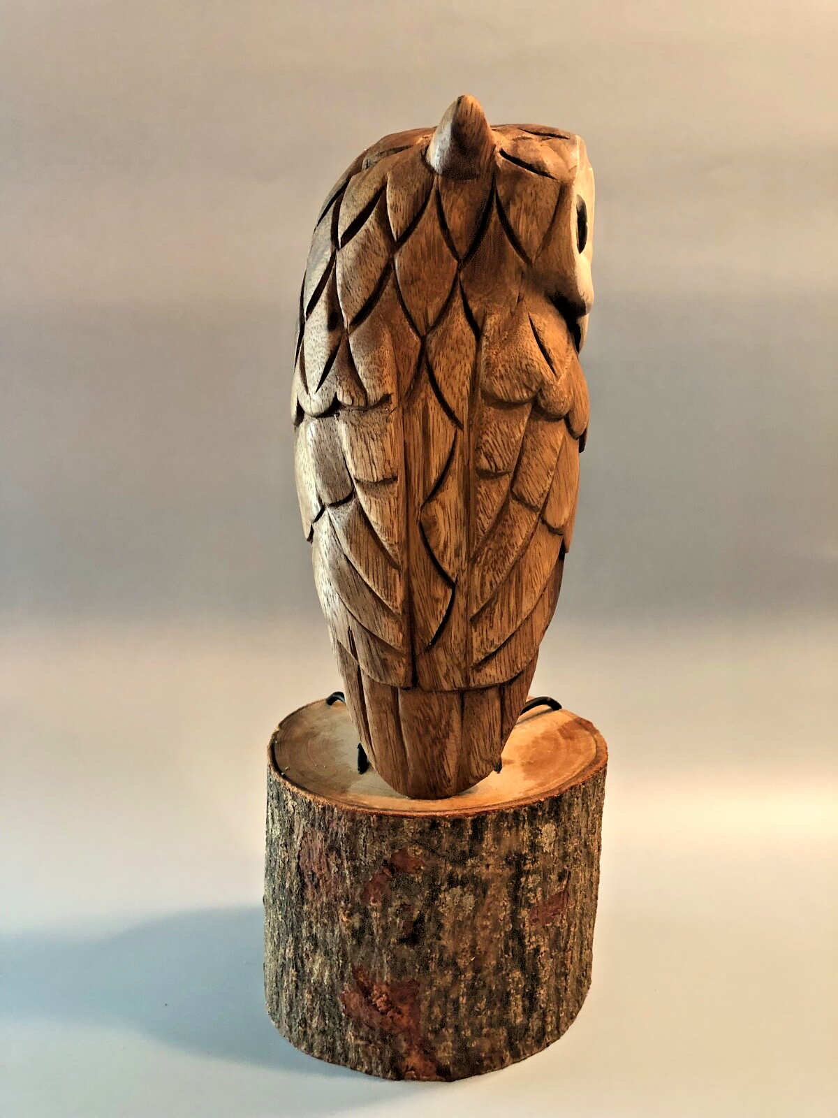 Elevate your space with a touch of the wilderness through this meticulously crafted wood owl sculpture. Standing at a proud 14 inches, its medium size is perfect for displaying on a mantel, shelf, or as a striking centerpiece. The natural brown hue of the wood emphasizes the sculpture's organic beauty, seamlessly blending with any decor.Designed with a modern aesthetic, this piece brings a contemporary twist to traditional nature-inspired art. The owl subject captures the essence of serene wildlife observation, making it an endearing addition to your home or office. The sculpture's sturdy material ensures it stands the test of time, becoming a lasting symbol of the peace and tranquility found in nature.