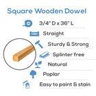 Woodpeckers Birch Wooden Square Dowels 3/4 inch x 36 inch If you like your wooden dowels square... you'll love our wooden dowel rods! They are - Hardwood - our hobby wood dowels are made of solid hardwood birch; Straight and smooth - At sturdy but not too heavy 3/4" x 36", they're ready to use right out of the bag; Beautifully unfinished - our square wood rods have a light and beautiful grain. They're beautiful enough to leave as-is, and are easy to paint or stain.;