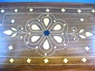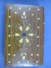 This playing card holder provides attractive storage for 2 decks of cards. Most obvious is the detailed inlaid design which adorns the exterior of the case. Dimensions: 7" long, 2.3" deep and 5" high. Nice gift for an avid card player!