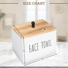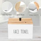 ORGANIZE IN STYLE: Keep your face towels neatly organized and easily accessible with this sleek wooden holder. Use this simple but functional face towel holder to protect them from dust and humidity. MULTIPURPOSE CHOICE: The versatile design of the disposable face towel holder box provides a great storage solution for your essentials. It can also be used to store your makeup-remover swabs, cotton pads, washcloths, hand towels, toiletries, etc NATURAL MATERIALS : Made from high quality wood, this holder adds a touch of warmth and natural beauty to any bathroom. This exquisite wood box holder for clean skin towels is what everyone wants. It keeps your face towels dry and clean, protecting them especially from water and mildew. SPACE SAVING DESIGN: Its compact size makes it ideal for bathrooms of all sizes, providing convenient storage without taking up valuable counter space. DURABLE CONSTRUCTION: Designed to withstand daily use, our wooden towel holder is built to last, ensuring years of reliable service. Upgrade your bathroom experience with our Wooden Face Towel Holder and add a touch of elegance to your daily routine. Product Description Elevate your bathroom decor with our exquisite wooden face towel holder, crafted from high-quality wood for durability and style. Elevate your bathroom decor with our handcrafted wood face towel holder. Made from high-quality wood, this towel holder provides a stylish and friendly solution for hanging and drying your face towels. With its natural finish, it adds a touch of warmth and sophistication to any bathroom. Durable Construction. Constructed from high-quality wood. Durable Construction. Constructed from high-quality wood, this holder ensures durability and longevity, promising to keep your towels neatly organized for years to come while adding a touch of warmth and sophistication to your decor. Elegant Wood Finish Crafted from premium quality wood, this face towel box container holder boasts a luxurious finish that adds a touch of sophistication to any bathroom decor. Sturdy Construction Constructed from high-quality, durable wood, our towel holder ensures longevity and reliability. The natural grain patterns and rich tones of the wood add warmth and character to any bathroom décor. Rustic Charm: Elevate your bathroom decor with this wooden face towel holder. Transform your bathroom into a serene oasis of relaxation with our Wooden Face Towel Holder. Add a touch of natural beauty and functionality to your daily routine. Order yours today and experience the perfect blend of style and convenience! Thoughtful Gift Idea Whether for housewarmings, weddings, or any special occasion, this wooden face towel holder container with lid makes a thoughtful and practical gift that will be appreciated by friends and family alike.