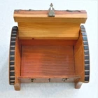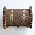 Handmade chest bench type of jewelry trinket keepsake box with bark top in good used condition. The clasp will not close all the way unless you put a small lock or something in it. There is a name written on the bottom of the box as you will see in one of the pictures.