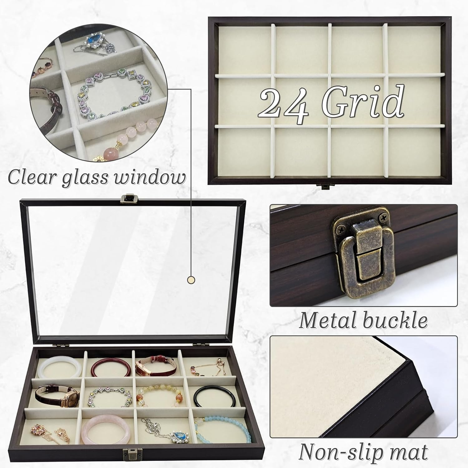 Store New Arrivals Add to Favorite View Feedback Jewelry Box with Glass Lid, Wood Jewelry Organizer Box, 24-Grid Earring Holder Organizer Jewelry Boxes, Jewelry Organizer Tray with Lock (Style 5) Description Item model number 20240116001 Closure Type Buckle Style style 5 Number of Compartments 12 Part Number 20240116001 Color Grey Brand WisePoint Material Wood Batteries Required? No Item Weight 2 pounds Shape Rectangular Recommended Uses For Product Bracelet Number of Drawers 1 Special Features Lock Manufacturer WisePoint Special Feature Lock Product Dimensions 5"D x 35"W x 24"H Occasion all Included Components 24 Wood+Velvet+Metal: These jewelry trays are made of sturdy wood and soft velvet. The cover with gray velvet looks exquisite. The metal hinges and lock catch are flexible and with a longer lifespan High Transparency Glass: Our jewelry box has a high transparency glass cover that can display and distinguish different jewelry, and effectively prevent dust. The jewelry box is equipped with a metal buckle, providing multiple protections for your jewelry Detachable Dividing Plates: The velvet partition of the earring organizer box is detachable, and the size of each compartment can be adjusted by removing the partition. It can provide up to 24 segmented compartments. It can store jewelry of different sizes as needed, which is practical High-capacity Storage Box: This jewelry holder organizer box measures 35 * 24 * 5 cm in size, with each compartment measuring approximately 5 * 5 cm. It can be used to store necklaces, watches, bracelets, brooches, rings, earrings, buttons, pins, and other valuable items Jewelry Storage and Display: Our velvet jewelry boxes are perfect for home use and can be placed on a dressing table, bedside table, or drawer. It is also suitable for displaying jewelry in the showcase of stores or exhibitions, and the glass cover does not affect the display while also protecting the jewelry Material: wood+glass Size: 35 * 24 * 5cm Weight: 0.9kg Package: jewelry tray* 1 Tips: 1. Due to the shooting light, please allow chromatic aberration. 2. The size and weight are manually measured, please allow for a little error. ABOUT US We offer the best prices around on high quality products. Our E-store includes media such as books, movies, music and games while offering electronics, toys, sporting apparel, clothing, tools, general home, garden items and more. SHIPPING We are always working hard to ensure your package arrives as soon as possible. Please understand that some factors like weather, high postal traffic, and the performance of shipping companies are outside of our control. We offer free shipping to the lower 48 states and ship within 2 business days of payment, usually sooner. We do not accept P.O. Boxes. Please provide a physical address. RETURNS We offer a 30-Day Return Policy on items which you are not completely satisfied with. You have the option for a full-refund or an exchange of the item. No returns are available on items shipped outside of the USA. PAYMENT We accept PayPal. CONTACT US This page content is yet to come Please ad us to your favorite seller and visit again later Thank You