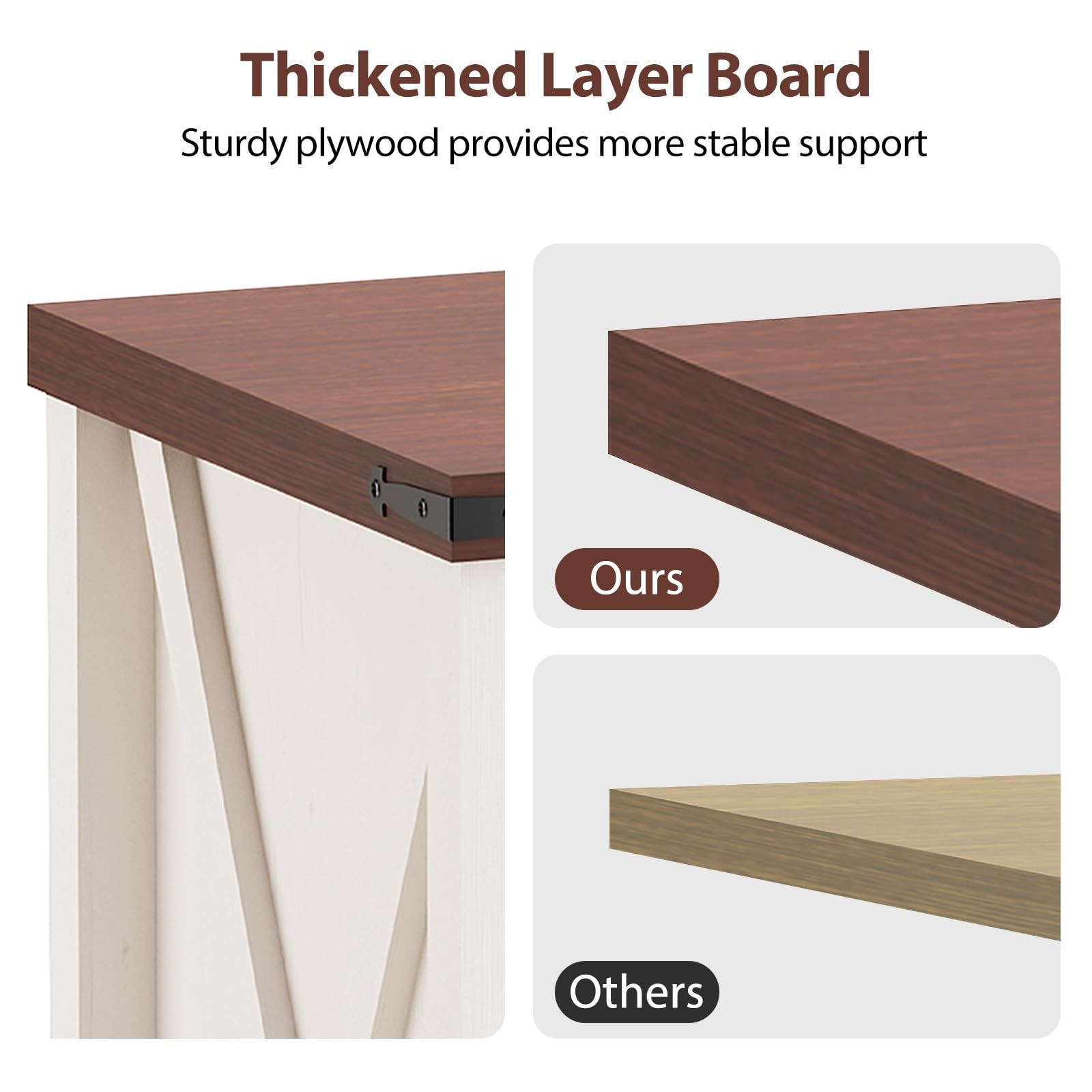 Record Player Stand, Wood Turntable Stand with Vinyl Record Storage Up to 160 Albums , Farmhouse Record Player Table for Living Room Bedroom, Wihte KCZ01W 【Stylish Three-Tier Record Player Stand】: This record player stand features three open shelves and two tabletops. The vertical shelves can hold various music records, with a maximum capacity of 160 records. The middle horizontal tabletop can hold magazines, clocks, discs, books, and other items. The top tabletop can hold the record player. This record player stand combines artistic beauty with practicality, bringing you convenience and joy. 【Perfect Dimensions】: This vinyl record storage measures 15.7'D x 19.7’W x 28.3"H, making it suitable not only as a record player stand but also as a side table or coffee table. Its height is perfectly suited for use with sofas and beds, allowing you to relax in bed while enjoying a cup of coffee or placing other items. 【Retro Design and Durable Materials】: The mid-century style record player stand is made of wood particle board, which is extremely sturdy and durable. It combines an elegant white table body with a brown tabletop, preserving the retro texture while incorporating a modern industrial style, adding a touch of retro charm to your decor. 【Multi-Functional Use】: This record player stand can be used as a side table in the living room, bedroom, or study to hold tea cups, lamps, books, and more. It is an ideal piece of furniture for home living, allowing you to enjoy afternoon tea or store daily essentials with ease. 【Easy Assembly】: This record player stand comes with detailed instructions, labelled parts, and assembly tools to help you assemble the record stand effortlessly. You can enjoy the satisfaction of assembling the record player yourself.