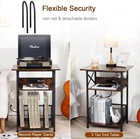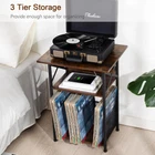 Record Player Stand with Charging Station, Large Turntable Stand with Storage Cabinet, 3 Tier End Table Hold Up to 100 Albums, Record Stand for Vinyl, Living Room, Brown, HETCD012BR-1 Record Table with Charging Station: This record player stand features 2 AC outlets and a USB-C port, providing a convenient charging solution for your record player, , and other devices Designed for Large Record Players: Measuring " W x " D x " H, this industrial stand features a wider tabletop for almost any record player. Made of sturdy steel and planed wood, it supports up to 110 pounds, adding both style and personality to your home Large Storage Space: This record stand features 3 layers, the top for your record player and magazines, an open second shelf for additional items, and a divided bottom space that holds over 100 records, providing ample storage and display options Multi-Occasion Use: This modern turntable stand suits various spaces—living room; study; bedroom; or office. It can also function as a bookcase; vinyl record storage; bedside table; or file cabinet, making your room cleaner and more comfortable Easy to assemble: The record storage stand includes clear instructions and labeled parts, along with installation tools for a smooth setup. If you have any questions during use, don’t hesitate to reach out for assistance
