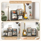 This record player stand is a game-changer for vinyl lovers—it holds up to 200 records while keeping them stylishly displayed and easily accessible. No more digging through cabinets! The sturdy top shelf fits most turntables, and the bonus guitar stand securely holds two instruments, making it perfect for musicians. A must-have for music enthusiasts who want both functionality and sleek design in one piece.