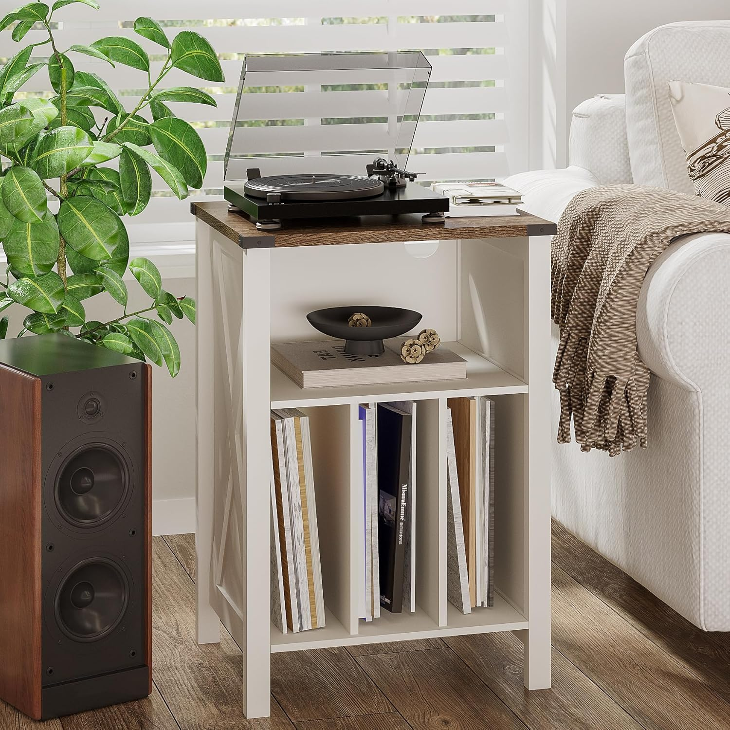 Store New Arrivals Add to Favorite View Feedback Contact Record Player Stand with Vinyl Storage, Turntable Stand with Charging Station, Record Storage Cabinet, End Side Table for Living Room, Bedroom, White Description Age Range Description Adult Top Material Type Wood Shape Rectangular Handle Color White Number of Items 1 Material Type Engineered Wood Is Stain Resistant No Top Material Type Wood Finish Types Stained Number of Racks 3 Table Design End Table Is Customizable? No Tilting No Shape Rectangular Model Number ET2402-1TWL Frame Material Type Wood Base Wood Model Name End Table Number Of Shelves 4 Tools Recommended For Assembly Screw Driver Specific Uses For Product Living Room, Bedroom Included Components End Table Item Weight 314 Pounds Frame Material Wood Is the item resizable? No Item Weight 31.42 Pounds Recommended Number of People for Assembly 1 Top Color White Is Foldable No Color White Item Dimensions D x W x H 15.75"D x 19.69"W x 28.74"H Furniture Finish Painted Indoor Outdoor Usage Indoor Bench Quantity 1 Handle Material Wood Base Type Leg Style Name Farmhouse Recommended Uses For Product Record Playing, End Table, Nightstand Product Dimensions 15.75"D x 19.69"W x 28.74"H Product Care Instructions Wipe with Dry Cloth. Avoid direct sunlight and heat sources. Dust regularly. 【Farmhouse Style】ChooChoo record player stand adopts soft off-white and rustic brown, and adds iron sheet elements, combining beauty and practicality 【Cable Management】The additional desktop recessed socket is convenient for charging your electronic devices, and the hollow design of the back panel keeps your wires from getting tangled 【Ample Storage Space】The open shelves in the upper part and the three-grid storage rack in the lower part allow you to store vinyl records according to different music styles for easy storage and organization 【Multiple Scenes】Not only limited to being used as a record player table, it is also a good choice as an end-side table and nightstand. It can be placed anywhere in the home as needed 【Easy Assembly】All panels of the turntable stand are numbered in detail and provide clear assembly steps so that you can easily assemble it in a short time Product Description ChooChoo Farmhouse Record Player Stand ChooChoo Record Player Stand with Charging Station Not only limited to being used as a record player table, it is also a good choice as an end-side table and nightstand. It can be placed anywhere in the home as needed. Turntable Stand with Vinyl Record Storage ABOUT US We offer the best prices around on high quality products. Our E-store includes media such as books, movies, music and games while offering electronics, toys, sporting apparel, clothing, tools, general home, garden items and more. SHIPPING We are always working hard to ensure your package arrives as soon as possible. Please understand that some factors like weather, high postal traffic, and the performance of shipping companies are outside of our control. We offer free shipping to the lower 48 states and ship within 2 business days of payment, usually sooner. We do not accept P.O. Boxes. Please provide a physical address. For shipping outside of the continental USA, we only use eBay's Global Shipping Program.The item is shipped to KY and then sent to the rest of the world. International customers are responsible for all duties and taxes. Continue to check out in order to calculate costs for shipping the item to your country. Messages regarding eBay's Global Shipping Program MUST be directed at eBay EXCLUSIVELY. RETURNS We offer a 30-Day Return Policy on items which you are not completely satisfied with. You have the option for a full-refund or an exchange of the item. No returns are available on items shipped outside of the USA. PAYMENT We accept PayPal. CONTACT US This page content is yet to come Please ad us to your favorite seller and visit again later Thank You CUSTOMER SATISFACTION We try our very best to make sure every customer is completely satisfied. If there's a problem, message us! We're happy to help.