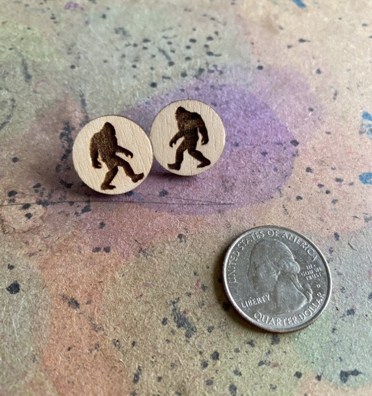 Laser engraved wood stud Sasquatch earrings. Very cool and eco friendly ❤️ Made to order.