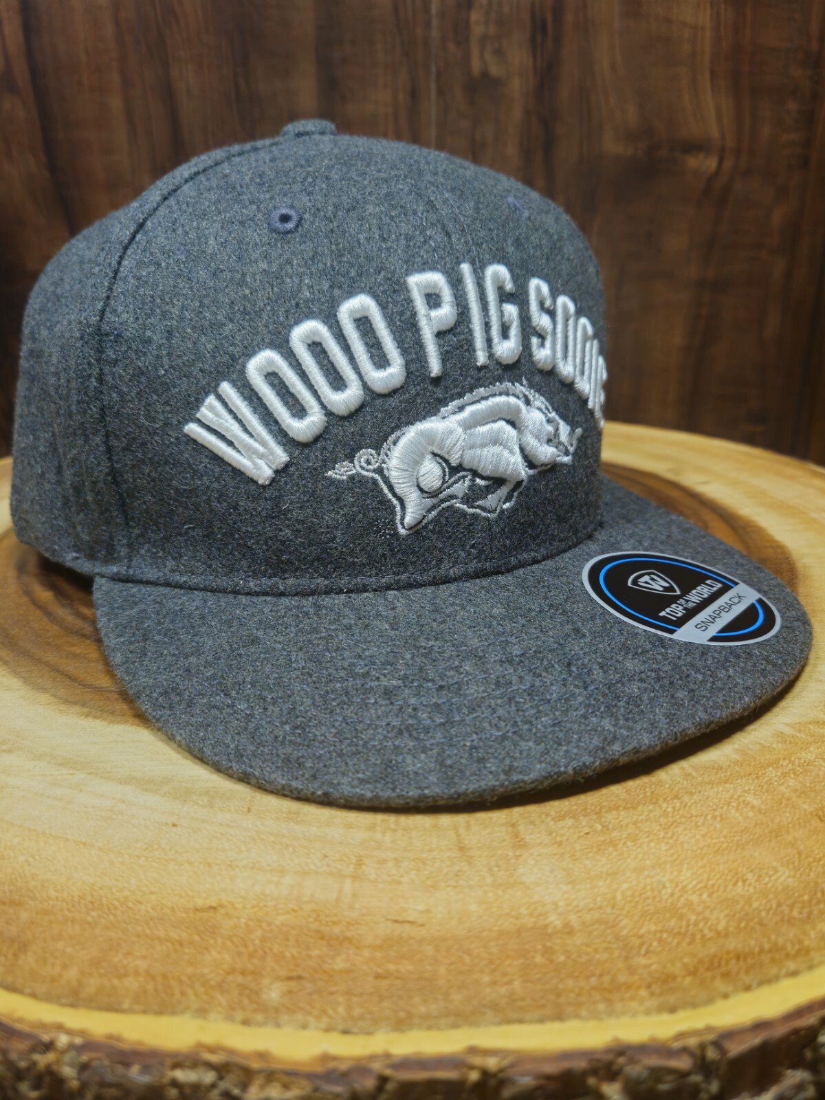 Show your team spirit with this stylish and adjustable hat featuring the Arkansas Razorbacks Wooo Pig Souie design. The hat is made by Top of the World and is perfect for any occasion, whether you're traveling, going to a basketball game, partying, or even wearing it to work. The hat is solid in color and has a snapback closure for easy adjustment. It's a great accessory for any fan of NCAA football, college sports, or streetwear fashion. Get your hands on this hat and show your support for the Razorbacks!