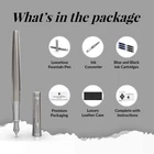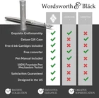 Store New Arrivals Add to Favorite View Feedback Contact Wordsworth & Black Fountain Pen Set, 18K Gilded Medium and Fine Nibs, 6 Ink Cartridges and Refill Converter, Gift Case, Smooth Writing Pens [Silver Chrome], Perfect for Men and Women Description Closure Click-Off Cap Item Weight 10.2 ounces Style Fine Nib Bundle Writing Instrument Form Fountain Pen Number of Items 1 Color Silver Chrome Material Type Metal Brand Wordsworth & Black Line Size 0.5 Millimeters Grip Type Contoured Manufacturer Part Number ERDCMB Ink Color Black & blue Age Range (Description) Adult Manufacturer Wordsworth & Black Point Type Medium and Fine Nib Bundle Package Dimensions 7.56 x 3.31 x 1.57 inches Size 1 Count (Pack of 1) ✒️Elegant And Beauty, Made To Impress Everyone - Beautifully balanced metallic design adds a touch of modern class to your daily routine. It gives high precision and exceptional writing comfort for every occasion, coupled with a gorgeous design. Pulled directly from our Erudite Collection, we've combined the weight of superior metals perfectly weighted and balanced for a premium writing experience. This refillable modern fountain pen delivers refined style and an exceptionally smooth writing. ✒️Express Yourself Through Effortless Writing - Built to offer a delicate weight that is perfect for both left and right handed writers, this fountain pen set will be your best writing tool that you carry around and bring with you everywhere. With the smooth lines, consistent flow, your lines will always glide across the page whether it is notes in your agenda or doodles on the side of a page. With zero ink leakage and cap cover, this is the perfect writer's pen. ✒️Discover The All-inclusive Refillable Fountain Pen Set - Includes luxurious fountain pen, ink converter, 3 x black and 3 x blue ink Cartridges, and a gift case - ready to be gifted. Each calligraphy ink and fountain pen ink cartridges comes in a plastic re-closable case and will last you at least 2 weeks of regular use. ✒️An Exquisite Gift Choice - Fountain pens are a classy gift for new and advanced professionals, managers, and executives in every industry. The Calligraphy pen ink has been carefully manufactured using only natural dyes giving the composition a neutral, natural, and non-toxic pH. ✒️Guaranteed - All our fountain pen ink are tested for both balance and a no-spill experience to guarantee a comfortable and consistent ink flow. Best of all, your purchase is protected by a full satisfaction guarantee. If you need a replacement from accidental or incidental damage, or simply would like a refund, we'll be there to ensure you're satisfied. We are a family owned, and take great pride in being there for our customers like we would be for our family. Product Description ABOUT US We offer the best prices around on high quality products. Our E-store includes media such as books, movies, music and games while offering electronics, toys, sporting apparel, clothing, tools, general home, garden items and more. SHIPPING We are always working hard to ensure your package arrives as soon as possible. Please understand that some factors like weather, high postal traffic, and the performance of shipping companies are outside of our control. We offer free shipping to the lower 48 states and ship within 2 business days of payment, usually sooner. We do not accept P.O. Boxes. Please provide a physical address. RETURNS We offer a 30-Day Return Policy on items which you are not completely satisfied with. You have the option for a full-refund or an exchange of the item. No returns are available on items shipped outside of the USA. PAYMENT We accept PayPal. CONTACT US This page content is yet to come Please ad us to your favorite seller and visit again later Thank You CUSTOMER SATISFACTION We try our very best to make sure every customer is completely satisfied. If there's a problem, message us! We're happy to help.