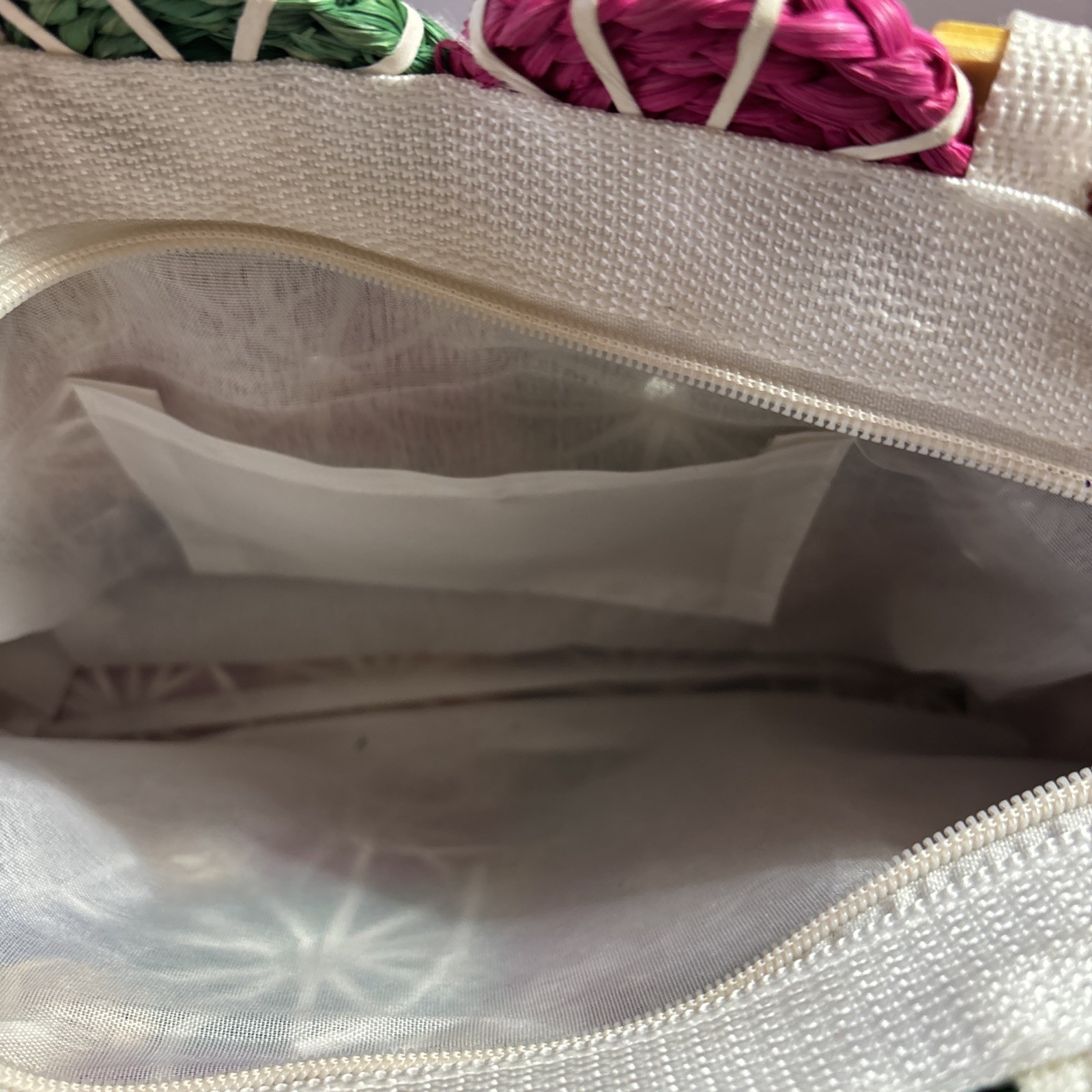 This Woven Corn Husk Market Basket Purse Bag Tote is a stylish and versatile accessory for any casual occasion. Made with a unique cornhusk exterior and a beige wooden handle, this medium-sized shoulder bag features a zip closure and lined interior with inner pockets. The bohemian and colorful theme adds a trendy touch to this purse, perfect for a day at the beach or a shopping trip. Its vintage-inspired design with a touch of grandma style makes it a charming addition to any outfit.