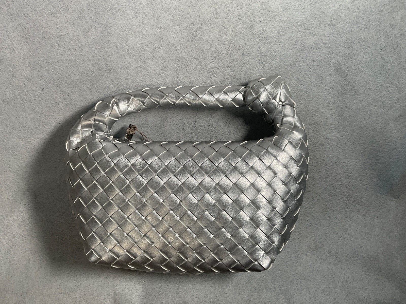 The Woven Slouchy Shoulder Handbag by A New Day in silver with a gold hardware accent is a stylish and versatile accessory. Made from polyurethane, this handbag features a single shoulder strap and a zip closure for easy access. The exterior is a sleek silver color, while the lining is a stylish gray tone, making it perfect for any outfit. Its regular size makes it suitable for everyday use, and its unisex design ensures it can be enjoyed by anyone. Perfect for adding a touch of elegance to your wardrobe, this handbag is a must-have for any fashion-forward individual.