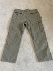 The Wrangler Riggs Ripstop Workwear Ranger Cargo Pants are designed for durability and comfort, featuring a beige color and made from cotton canvas material. These men's pants have a regular fit with a waist size of 40 inches and inseam of 30 inches. The cargo style includes multiple pockets for convenience, making them suitable for everyday wear or workwear. The pants are part of the Wrangler RIGGS Workwear line, known for its quality and reliability.