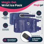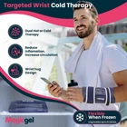 Magic Gel Hot or Cold Wrist Wrap Magic Gel wrist wraps can be used to provide heat or cold to the wrist as needed. The wrist sleeve is perfect to keep on hand as a warming wrist support or as a wrist ice pack. Ideal for use at home or following exercise. EASY AND CONVENIENT: COLD - Place the in the freezer for two to four hours to cool. Keep a wrap in the freezer for instant cooling anytime. HOT - Microwave on low for 25 seconds to warm the wrap. Do not microwave frozen gel packs. HIGHLIGHTS: Provides soothing heat or cooling around the wrist Secure and adjustable straps Reusable and leakproof construction Stays soft and flexible even when frozen Dual use hot or cold wrap that can be used year round Move freely even while wearing the ice pack Suitable for men and women Plush interior feels soft against skin MEASUREMENTS: Length: 12.6" (32 cm) Width: 0.4" (1 cm) Height: 7.25" (18.5 cm) Weight: 0.9 lb (0.4 kg) INCLUDED IN DELIVERY: Wrist gel pack with straps