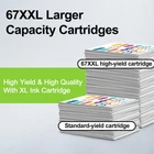 For HP 67XXL Ink Cartridges Printer Compatibility :DeskJet Series: 1210, 1212, 1215, 1255, 2300, 2330, 2331, 2333, 2700 2710, 2720, 2721, 2722, 2723, 2724, 2725, 2729, 2732, 2752, 2755; for HP DeskJet Plus 4100, 4110, 4120, 4121, 4122, 4130, 4132, 4140, 4152, 4155, 4158 For HP 67XXL Ink Cartridges Printer Compatibility :Envy Series:6000, 6010, 6020, 6022, 6030, 6032, 6034, 6052, 6055, 6058, 6075; for HP Envy Pro 6400, 6420, 6422, 6430, 6432, 6452, 6455, 6458, 6464, 6475 Higher Page Yield: Up to 650 Pages per 67XXL tri-color ink cartridge at 5% coverage (A4/letter). 67 INK Contents: 1 Pack of Remanufactured for HP 67 Ink Cartridges Color Pack (1 xTri-color) Sincere customer service:What you enjoy is not only products, but also sincere customer service.We provide customers with one-year after-sales service.