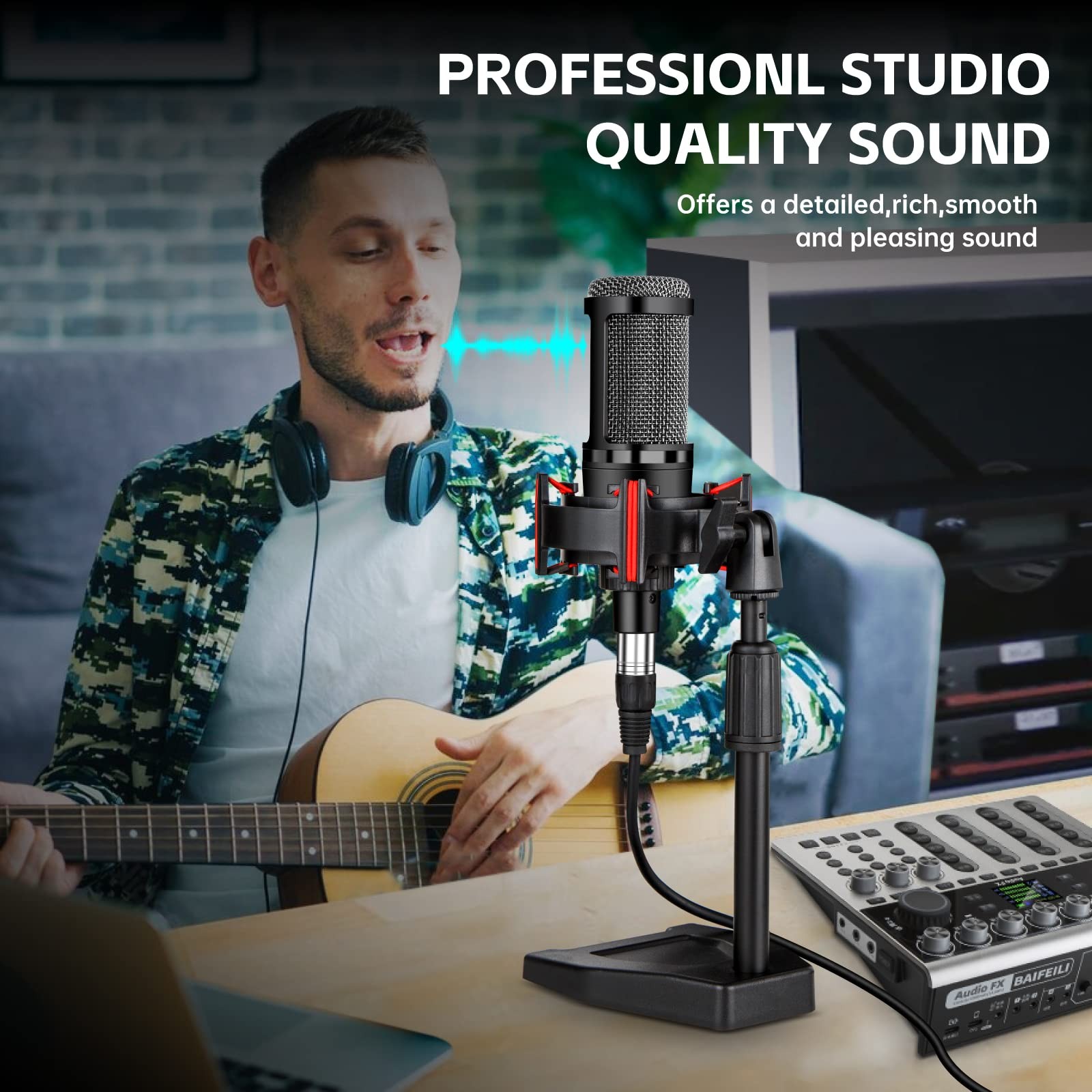 XLR Podcast Microphone Professional Cardioid Condenser Microphone for PC Computer Studio XLR Mic Kit for Recording/Podcasting/Streaming/Voice Over/ASMR/Home Studio/YouTube with Desktop Stand PROFESSIONL SOUND QUALITY : xlr microphone built-in large Dia.14mm condenser capsule and professional sound chipset. Professional cardioid condenser microphone xlr picks up crystal clear sound.The xlr podcast microphone has smooth and wide frequency response 20Hz-20kHz and provides superb sound reproduction quality for high-resolution audio.Studio microphones great for studio as well as home use CARDIOD PICKUP PATTERN : The xlr streaming microphone records sound sources that are directly in front of the condenser microphone, the cardioid pickup pattern capsule enables to capture pristine and accurate sound and cancel noise from surroundings and improves the sound quality. Professionalmicrophone xlr uses brand-new technology and high-quality materials to bring you better recording effects EXTERNAL POWER SOURCE REQUIRED : NOTE !! recording microphone is an XLR interface, it requires 48V phantom power, audio interface, mixer or preamp for operation. (Not included in the package). If you need to connect to your PC, Computer, Lapatop, Pad, Phone, please be sure to connect the phantom power first! Condenser microphone bundle perfect for recording, podcasting, singsing, live streaming, gaming, youtube, ASMR, karaoke and online chatting EXCELLENT SHOCK MOUNT EFFECT & DETACHABLE POP FILTER : Full metal construction xlr condenser microphone, sturdy and durable. Upgrade shock mount it can protect your pc microphone all-around with high elasticity wrap roping design and reduce vibrations from traveling into the xlr mic.This audio recording microphone comes with compatible pop filter. It effectively blocks air blasts and banishes the annoying hissing and lisping sounds, which improves the sound quality STURDY BASE & HEIGHT ADJUSTABLE STAND : This desk microphone stand is designed with a heavy weighted base provide a precise balance and stability for your xlr microphone for podcast.The height of this heavy-duty microphone stand is adjustable from 7.6 to 11.2 inches with a reliable clutch, allowing you to place it at the optimal height for maximum comfort while using PACKING LIST : xlr microphone kit includes : Condenser Microphone * 1, Stable Base * 1, Pop Filter * 1, Shock Mount * 1, XLR Male to XLR Female Cable (79 inchs) * 1, Manual * 1 XLR Podcast Microphone Professional Cardioid Condenser Microphone XLR for PC Computer Studio XLR Mic Kit for Vocal Recording,Podcasting,Streaming,Voice Over,ASMR,Home Studio,Youtube with Desktop Stand Shipping We offer FREE shipping on all orders! We ship within Three business days of payment, usually sooner. We use a selection of shipping services such as UPS, FedEx, USPS etc. We only ship to the lower 48 states, no APO/FPO addresses or PO Boxes allowed. Local pickups and combined shipping options are not provided at this time. Return You can return a product for up to 30 days from the date you purchased it. Any product you return must be in the same condition you received it and in the original packaging. Please keep the receipt. Payment We accept payment by any of the following methods: PayPal Please pay as soon as possible after winning an auction, as that will allow us to post your item to you sooner! Feedback Customer satisfaction is very important to us. If you have any problem with your order, please contact us and we will do our best to make you satisfied. Contact Us If you have any queries, please contact us via ebay. We usually respond within 24 hours on weekdays. Please visit our eBay store to check out other items for sale! Thank you for shopping at our store.