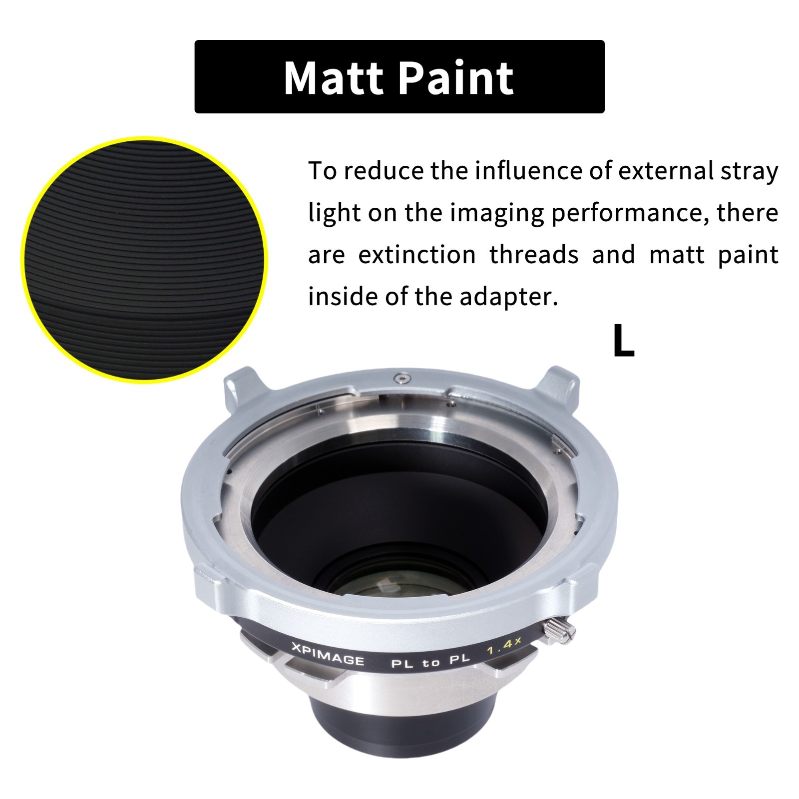 Lens: Compatible with S35 PL mount lenses Camera: Compatible with full-frame PL mount camcorders IMPORTANT NOTES: Lenses with tail length >22.5mm cannot be used. KEY FEATURES: 1.4x Full-Frame Expander – Enables S35 PL lenses to cover full-frame sensor with minimal image quality loss 1.4x Focal Length Increase – Only 1-2 T-stop loss at full aperture for filmmaking versatility Tool-Free Back Focus Adjustment – ±0.03mm adjustment range without tools Precision Infinity Focus – CNC machined and assembled for accurate focus at infinity Premium Metal Construction – Stainless steel and aluminum alloy for durability and light weight Anti-Reflective Coating – Matte black interior minimizes flare and ghosting Hard-Anodized Finish – Enhanced wear and corrosion resistance Unique Identification – Each adapter has a unique ID number For any questions regarding product use, please see the tutorial video or leave a message for help.