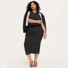 Fit & style Model wears size XS and is 5'10" - Model wears size 1X and is 5'9" Sweater midi skirt Mini polka dot pattern in black and white Jacquard-knit fabric Mid rise Elastic waistband Sizing: Womens Plus Material: 64% Viscose, 30% Recycled Polyester, 6% Nylon Fit: Regular Fit Closure Style: Full Waistband Elastic Rise: Mid Rise Fabric Name: Jacquard Knit Garment Length: Midi Total Garment Length: 28 Inches Garment Details: Full Waistband Elastic, No Pocket Fabric Weight Type: Lightweight Fabric Care and Cleaning: Machine Wash, Line Dry or Lay Flat to Dry Street Date : April 12, 2025