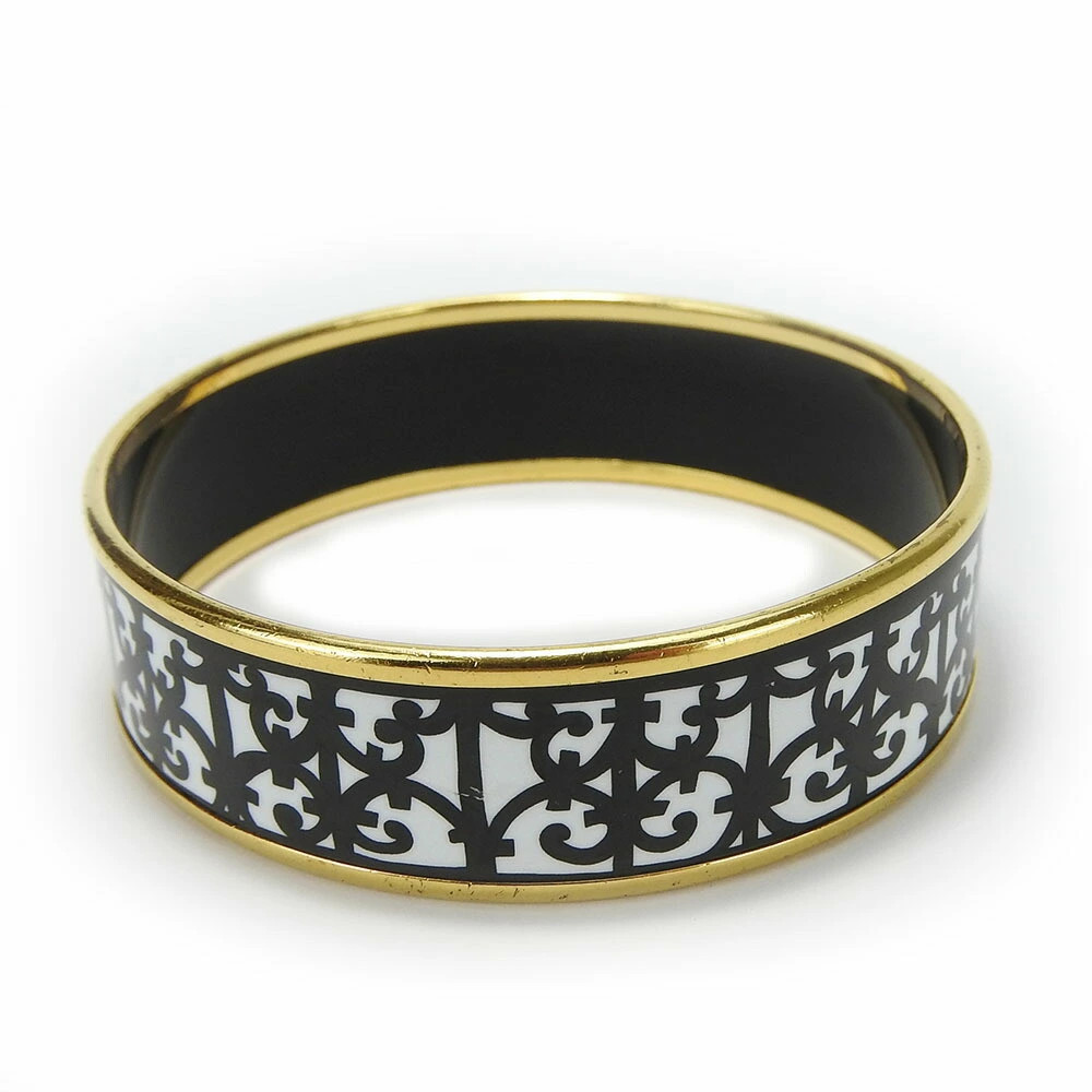 Y1225 Hermes Bracelet Enamel GM Metal Cloisonné Multicolor Black Pink Gold Hardw