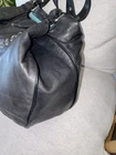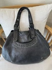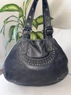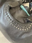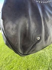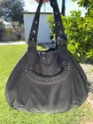 Y2K Marc Jacobs Smooth Black Leather Studded Hobo Slouchy Shoulder Bag Purse -Good condition with a lot of life left. Some minor water like spots to exterior, a red smudge dot to interior of the exterior handles, a slight peel to leather toward exterior back, some discoloration and scratches to leather which just adds to its charm. There is an internal purple stain toward interior top, interior could use some cleaning primarily to the inner zip pocket. All imperfections shown in photos. Please zoom in as needed. Photos taken in different lighting for color comparison -Decorative metal stud accents -Silver accents -Soft/Smooth leather construction -Black exterior color tone -Blue Interior with pink polka dots -Crescent l-shaped "hobo" style bag with an oversized silhouette -Top snap closure -Interior zip pocket -Exterior small slip pockets toward the front of bag -Timeless and chic style -Double handles adjustable at the straps -Lightweight -Spacious and large -Approximate measurements: 17” width, 13.5” length, 5” depth, 8” handle drop