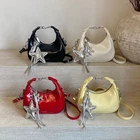 Unique Crescent Design: This gorgeous small wallet features a classic crescent shape and adopts a homeless style design, which is casual and unique in fashion. It attracts the attention of everyone in the crowd, allowing you to shine and showcase your style, suitable for people of all ages. 【 Wonderful Structure 】: The handle is in the form of a lock buckle, equipped with adjustable and detachable shoulder straps, providing flexibility whether used as a handbag, crossbody bag, or women's armpit bag. 【 High quality material 】: Made of soft vegan PU leather, easy to clean and maintain, and durable. The crescent shaped bag features a stylish heart-shaped metal zipper closure to ensure the safety of your personal belongings. 【 Applicable size 】: Approximately 21 * 7.5 * 16cm inches (length x width x height), weighing 0.26kg. It includes a small zippered compartment with enough space to store travel and daily essentials such as mobile phones, glasses, cosmetics, cards, etc., meeting your daily storage needs. 【Applicable Occasion】 This dumpling bags is suitable for any occasion, whether it's a weekend brunch, wedding, party, dance, cocktail party, or formal event. Perfect for leisure, gatherings, dates, shopping, traveling, weddings, vacations, and everyday use. it can be well matched with your clothes and is the best accessory for women. ✨【 Unique Crescent Design】: This gorgeous small wallet features a classic crescent shape and attached a decorative silver star accessorise , which is casual and unique in fashion. It attracts the attention of everyone in the crowd, allowing you to shine and showcase your style, suitable for people of all ages. 🌛【 Wonderful Structure 】: This crossbody bag has one large compartment, equipped with adjustable and detachable shoulder straps, providing flexibility whether used as a handbag, crossbody bag, or women's armpit bag. ✨【 High Quality Material 】: Made of Glossy Patent Leather, easy to clean and maintain, shinny and durable. wear resistant polyester fiber lining, with superior silver hardware accessories. this bag is must-have collection for all stylish vegan ladies. Quality made shoulder bags, Stand the test of time. 🌛【 Applicable size 】: Approximately 20 * 7 * 15cm . weighing 0.26kg. It includes a small zippered compartment with enough space to store travel and daily essentials such as mobile phones, glasses, cosmetics, cards, etc., meeting your daily storage needs. 🌈【Applicable Occasion】 This Crescent bags is suitable for any occasion, whether it's a weekend brunch, wedding, party, dance, cocktail party, or formal event. Perfect for leisure, gatherings, dates, shopping, traveling, weddings, vacations, and everyday use. it can be well matched with your clothes and is the best accessory for women.