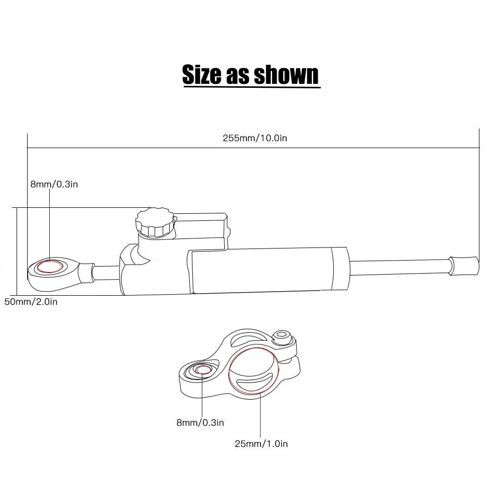 Feature: - Reduce rider fatigue and eliminate headshake, improve lap time - Ultra precision machine cut for super light weight construction, high precision and quality. - Made of durable aluminum for extreme strength. - Easy Installation without any modification required. - Anti-oxidising and long lasting. - Top quality and security are guaranteed Condition: 100% brand new Material: CNC Machined high quality aluminum Color: Black/Gold/Blue/Red/Gray/Green Fitment: This Steering Damper fit most of motorcycles. Such as For BMW ,For YAMAHA ,For Ducati , For Suzuki , For Kawasaki , For Honda , For Aprilia ...... Highly recommend to install the bike that is over 600cc. · After installation, turn the head to the very right and very left to check if there is enough space for the steering damper activity or not. · Check if the steering damper and its kit reach the motorcycle or oil tank. if they do or the room is lacking, move the steering damper horizontally to the appropriate place. Note: 1.We are providing wholesale, if you need it, Please contact us to get lastest price. 2. Please make sure this part fits for your motorcycle before making an order. 3. Please kindly give us your positive feedback after receiving your product. 4. If you have any question, please feel free to contact us. We would like to help.