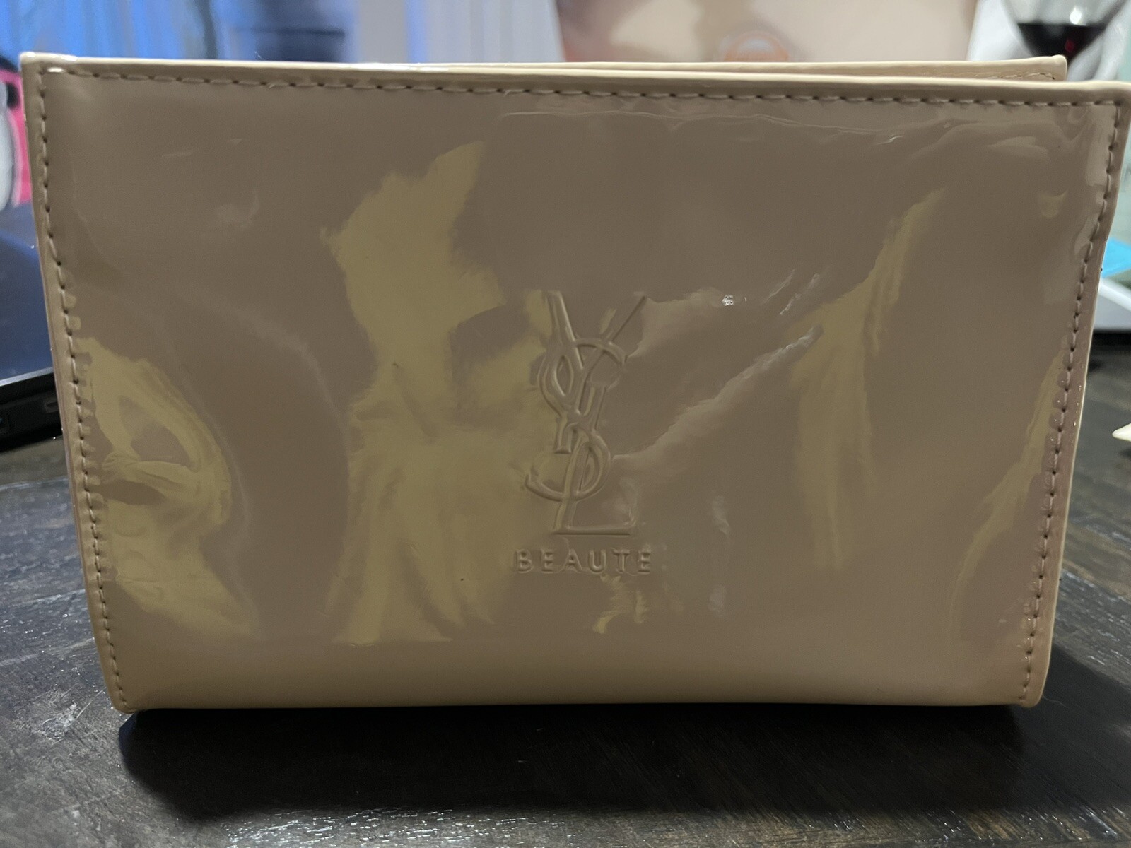 YSL shiny Beaute make up bag in off pink cream color Beautiful small bag You can use as coin and small pouch.