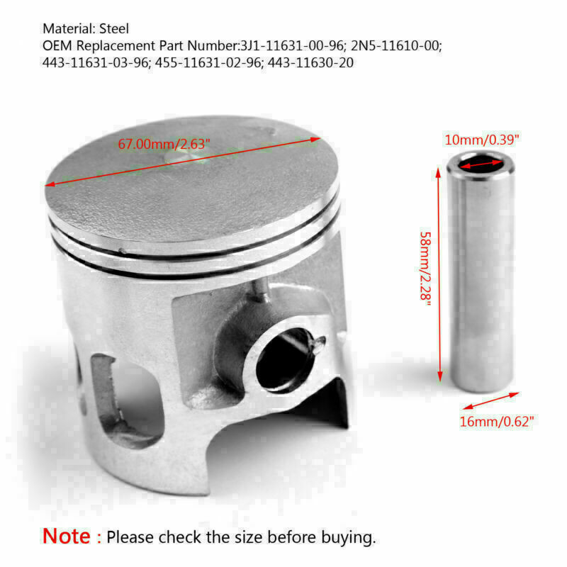 You may also like Rear Carrier Tail Luggage Rack For Kawasaki KLX230 KLX 230 / ABS 2020 - 2022 98.69 USD Free shipping Voltage Regulator Rectifier For Yamaha YFM200 YFM 200DX Moto 4 200 1989-1990 US 28.69 USD Free shipping Carburetor Air Intake Insulators Boots For Honda CB750 CB750K SOHC 1971-1976 24.69 USD Free shipping Oversized 4.0 Gallon Fuel Gas Tank RED For Honda ATC250R ATC 250R 1985-1986 279.0 USD Free shipping Stator Regulator Rectifier with Gasket For Street Triple 675 675R 2008-2012 11 124.69 USD Free shipping Mirror Set Left & Right For Ducati Streetfighter V2 V4 Monster 797 821 937 1200 51.69 USD Free shipping All Models For Honda For Suzuki For Kawasaki For Yamaha For BMW For Polaris For CFmoto For Ducati For Benelli For Trident For Triumph For Aprilia Other part You may also like Piston Kit &Rings Set 47.25mm Fit for Yamaha Raptor YFM90R 09-13 43D-E1631-00 YU 12.69 USD Free shipping +0.50MM Piston Sit - Bore Size Ø66.00mm Fits Honda XL200 XR200R XR200 1980-2002 24.69 USD Free shipping Piston Rings Pin Kit 73.25mm +0.25mm Bore Fits Suzuki DR250R/S DRZ250 1998-2007 36.69 USD Free shipping Piston Rings Set & Gaskyets Pro-X Engine 66Mm For Yamaha Blaster 200 1988-06 37.69 USD Free shipping STD 72.0mm 12111-38201-000 Piston Kit Fits Suzuki GN250 Runner Ozark ATV Quad UE 27.69 USD Free shipping PRODUCT DESCRIPTION Piston Pin Ring Kit For Yamaha DT175 1974-1976/1979-1981 TY175 1975-1976/1980 MX175 1974-1975/1979-1982 FEATURES: Forged pistons for Yamaha. Manufactured using the latest computerized technologies derived from GP and F1. Forged pistons are more temperature resistant and longer lasting than cast pistons. These pistons additionally have a piston skirt coating. The piston sets are supplied complete with rings, bolts and clips. Airtight function,prevent gas leakage from the top of the piston. This piston ring also achieve the heat dissipation effect. Prevent excessive oil from entering the combustion chamber and to fully lubricate the cylinder wall. Maintain the direction of movement of the piston,so please select the best piston ring for the engine. No installation instruction included. SPECIFICATIONS: Condition: 100% Brand New Material: Steel Bore Size:67.00mm (+1.00) OEM Replacement Part Number: 3J1-11631-00-96 2N5-11610-00 443-11631-03-96 455-11631-02-96 443-11630-20 FITMENT: Fits Yamaha DT175 1979-1981 Fits Yamaha DT175 1974-1976 Fits Yamaha YT175 1975-1976/1980 Fits Yamaha MX175 1974-1975/1979-1982 Doesn't fits 74-75' DT175A PACKAGE INCLUDED: 1x Piston Pin Ring Kit NOTICE: Please check out this product and size fits your motorcycle or not before you purchase. About Us Payment Shipping Returns Contact Us About VIPIH VIPIH is one of the international leading distributors specialized in distribution of motor parts of the world's prime motorcycle part suppliers on a global scale with the full responsibility in procurement, shipping, sales and marketing and after sales service. VIPIH fulfills all needs of its clients completely and on a timely basis with the know-how it has built up since it was established and the comprehension knowledge of the sectors standards. The perfectionist approach in product quality, high service availability, strict principle of business follow-up, reliability and the good reputation which has gained strength as a result of customer satisfaction are the most striking components of VIPIH's success. VIPIH is presently capable of supplying all demands for motor parts from the petrol pump to rectifier in a wide range. Free delivery with worldwide shipping options available. If you need any further information before ordering,please get in touch with expert advice. About Item All items sold by us are being described to the best of our abilities, as accurate as possible, and with utmost conscientiousness on our part. However, to avoid any potential oversights, I respectfully request your assistance in helping us to make this a mutually satisfactory transaction by THOROUGHLY reviewing item description and photos, and asking all questions PRIOR TO BIDDING. Customer Satisfactory 1.We back our commitment with superb service, 100% full money back and a customer satisfaction guarantee. 2.I am here and ready to assist you with any questions or concerns you might have before or after the purchase. 3.My goal is to make sure you are a happy customer and pleasant shopping with us. Feedback If you are satisfied with the purchase and our total service, your comment is very important in our business success. Please take a minute to leave us a positive feedback with an overall Detailed Selling Rating (DSR) of 5. Our eBay account setup auto feedback, so eBay system gives you automatically Positive feedback back after your positive feedback left. If you plan to give us a neutral/negative feedback Or open ebay/paypal case, please write to us immediately so that we can do our best to resolve your problem. 1.We only accept PayPal. 2.PayPal is the only online payment method we accept. Please make sure you have a valid/confirmed PayPal account prior bidding. 3.Payment must be made within 3 days of the auction end time. Non-Paying bidders will be reported. 4.Our eBay account automatically open a dispute for a unpaid item, when we don't receive your payment after 4 days. Handling Time : The item will be shipped within 3 business days after the buyer's payment is received. Delivery Time : TO USA, it typically takes about 6-10 working days,Expedited shipping usually takes 1-4 working days. TO other countries, Economy Shipping usually takes approximately 11-35 working days. Standard Shipping usually takes 7-19 working days,Expedited shipping usually takes 3-7 working days. The exact delivery time may vary depending on the buyer's address and any potential delays that may occur during transit. Shipping Methods : We use ebay official shipping Speedpak or other Economy/Standard/Expedited shipping. The carrier will be selected based on the destination and package requirements. L