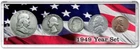 Celebrate a special year with this attractive set that will forever commemorate that momentous year. Each set contains a cent, nickel, dime, quarter and half dollar of your selected year. As each coin is unique in its own way, the appearance of the coins received may differ slightly from those pictured. Great care is given to the selection of quality coins for each set. Dimensions: 6'' x 2'' x .25'' This Year Gift Set comes housed in a lovely Gift Box with its Certificate of Authenticity.