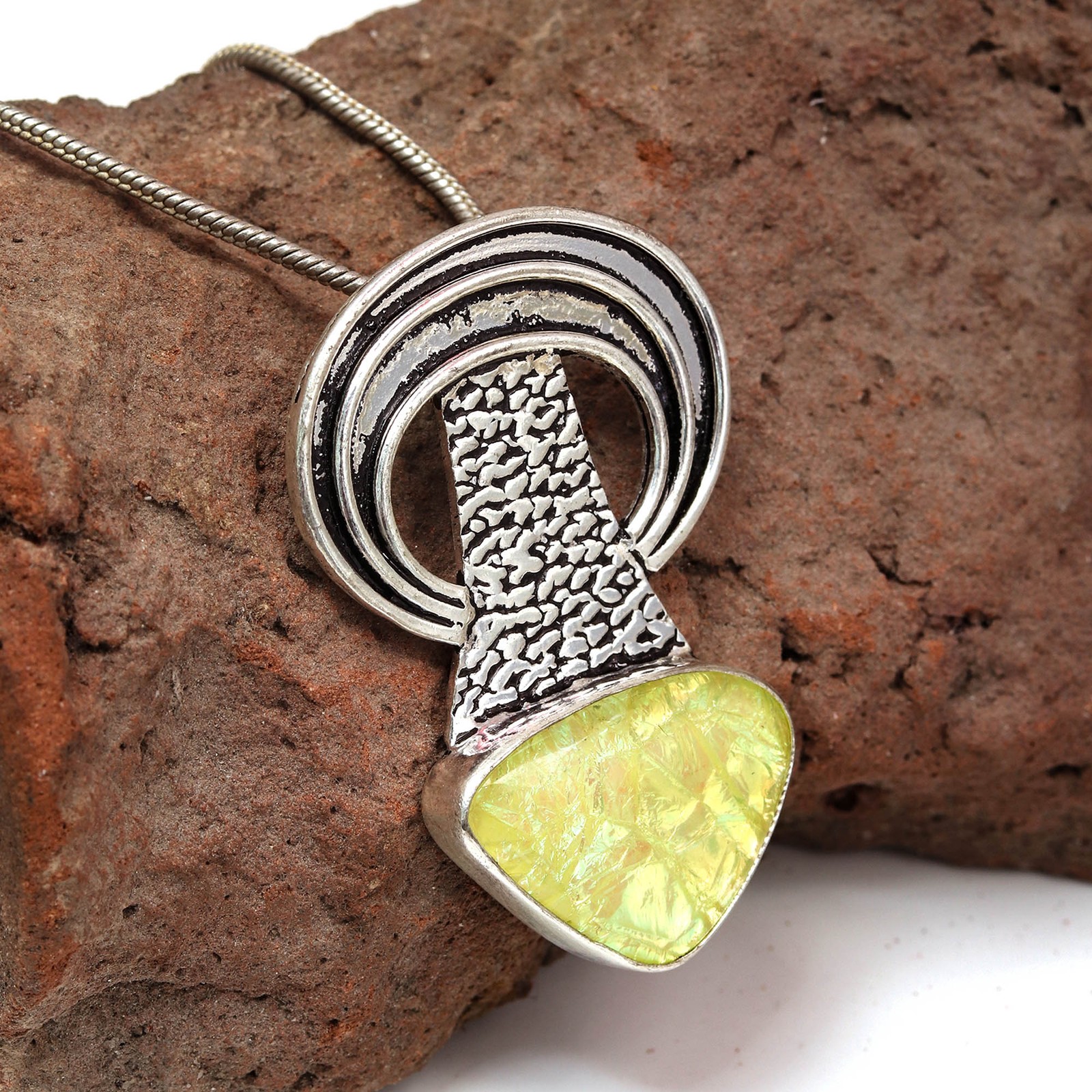 Yello Austrelian Opal Gemstone Mother's Day Silver Jewelry Pendant 2"