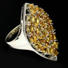 Solid sterling silver 925 stamped white gold coated cluster ring featuring oval cut faceted genuine natural mined golden citrine gemstones each measuring 5mm x 3mm set into a large cluster design. The face of the ring measures 37mm x 21mm and is a size Q 1/2 (US 8.5). GIFT BOXED Thanks for looking and please take time to view my other listings #10968