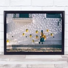 Yellow Girl Pot Pots Scarf Street Walk Walking Mediterranean Wall Art Print