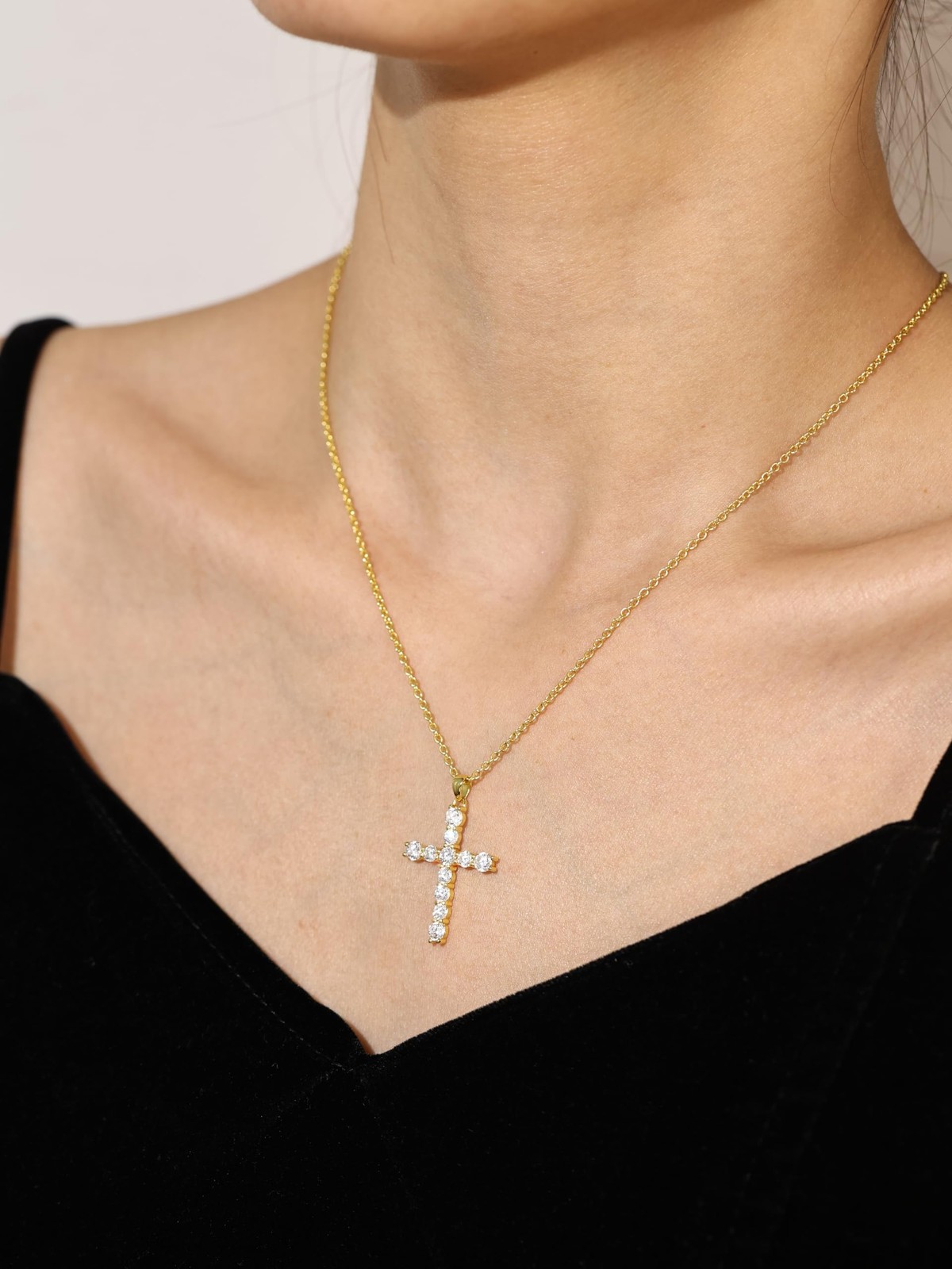 About jewelry is a family-owned jewelry company headquartered in Manhattan, New York. After three generations of development, jewelry has now become an integrated jewelry company, products made by gold and Sterling silvers, diamonds, colored gemstones, pearls etc. The brand concept of Jewelry is to design affordable jewelry which is exquisite, timeless and unique by cooperate with outstanding independent designers. Jewelry also provides meticulous and considerate services to consumers all around the world. To be more competitive we take a “mine to market” strategy—purchasing gemstones directly from the mining area and then complete the conceptual and creative design inside US. We cooperate with the best jewelry manufacturers in China and Asia to ensure that every jewelry we delivered to our consumers is affectionate boutique. Take it, you will find its worth! Product Specification This Pendant Necklace is the perfect necklace Metal Material: Sterling Silver Gem Type: Cubic Zirconias. r Package Include 1 Pendant necklace * Beautiful Gift Box ▶ HIGH QUALITY – Brightly polished finish, our bestselling cross pendant necklace is paved with top grade cubic zirconia diamond round stones and 14K yellow gold plating. Look dangling from a classic 18-inch sterling silver cable chain. ▶ PERFECT GIFT – Jewelry is always perfect for any occasion: birthday gift, valentine's day gift, engagement, promise, wedding, anniversary, gifts for women, gifts for mom, gifts for mother in law, gifts for wife, gifts for aunt, gifts for best friend, grandmother, sister, or just about any other occasion. ▶ GIFT BOX – All items are well packaged in an elegant jewelry gift box to ensure a smile on your loved ones face. ▶ SAFE & COMFORTABLE – Carefully constructed with high quality for comfortable wear and fit. Passed Swiss SGS Inspection Standard. Nickel free.