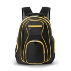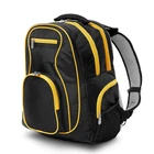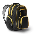 This Premium Colored Trim Laptop Backpack is built with water resistant ballistic nylon. There are two main compartments - one padded compartment that holds a 19" laptop, the other has enough room to store your books, binders, files and folders and also contains pen loops and cardholders. This backpack also has a Spine Saver shoulder pad shock absorber, a back airflow system, and a back strap that enables the backpack to slip over the handle of your wheeled luggage. Main organizational compartment Padded laptop compartment that can hold up to a 19" laptop Two small front pockets Two side pockets Built with water resistant ballistic nylon Spine Saver shoulder pad shock absorber with integrated airflow system Pen loops, cardholders, key loop Officially Licensed Listing and template services provided by inkFrog