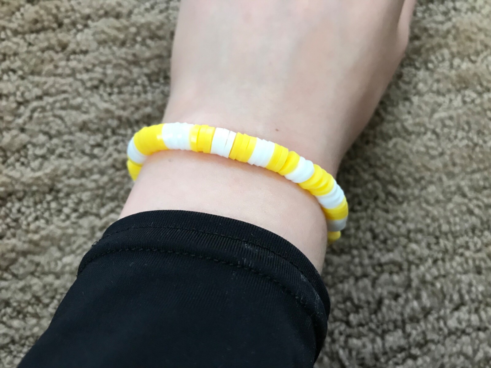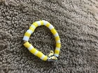 Crafted with care, this charming bracelet features a string of yellow and white clay beads, offering a playful yet classic look. The beaded design gives it a delightful texture, while the neutral color palette makes it a versatile accessory that pairs well with a variety of outfits, perfect for casual occasions or adding a touch of whimsy to children's jewelry collections.The bracelet's clay material ensures durability and a unique aesthetic, and its unbranded nature speaks to its handmade quality. Designed to accommodate a smaller wrist, this piece is ideal for kids' fashion and can be a delightful gift or a personal treat for those who appreciate the simplicity and creativity of artisanal jewelry.