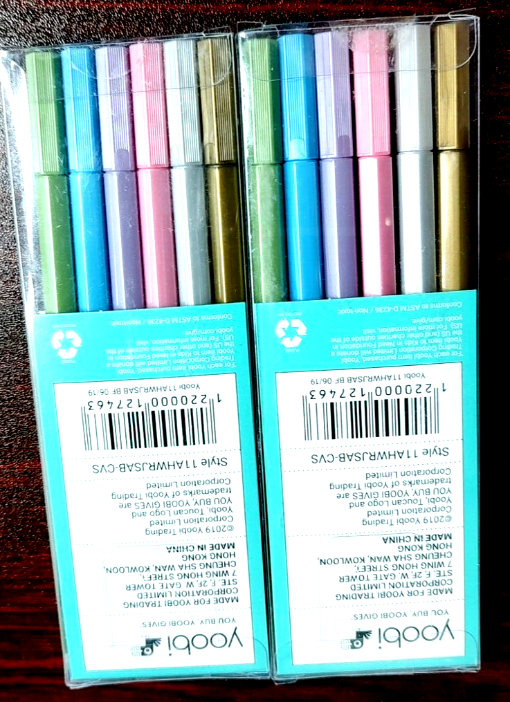 Markers Metallic Ink Felt Tipped 2x 6 Pack Yoobi New Size: Standard Scent/Flavor/Shade: Assorted Metallic Quantity:2 Packs of 6 Please visit ebay.com/str/sweetmenagerie for compatible, similar or other items. Check back for regular sales. Thank you! This item is not available for sale or shipment to Europe.