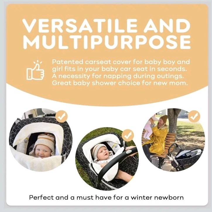 Safe and Universal Fit : The winter car seat cover for babies features with elastic bands at the bottom, it fits car seat carrier and standard stroller well, protect your baby from the elements and chilly weather. It doesn't interfere with the proper harnessing of the child or the functionality of the car seat's safety features. Winter Car Seat Cover for Babies: Weather-resistant nylon blocks wind and rain. Soft fleece cover keep out the cold, way more convenient than keep a blanket on and more comfortable than using a coat or snowsuit. Patent Design: Easy to secure baby in the car seat carrier without take off the carseat cover, you can unzip the flap or roll the top at side to adapt temperature change.Our winter carseat cover meets safety standards and approved by CPSC certifications. Perfect Choice for Baby Shower: Patented winter carseat covers for baby boy and girl fits in your baby car seat in seconds. A necessity for napping during outings. Great baby shower choice for new mom. Ultility and Stylish: The three magnetic buttons on the flap of the winter car seat cover for baby can adjust the opening to see your baby whenever,insure the privacy protection and adjust the temperature without removing the car seat cover for babies.
