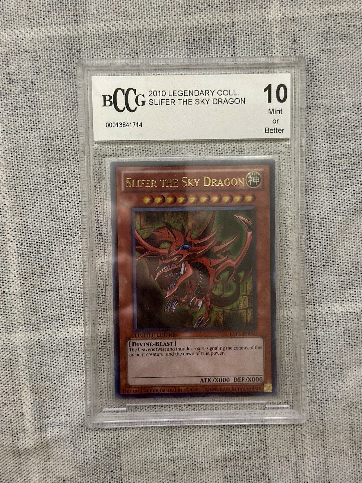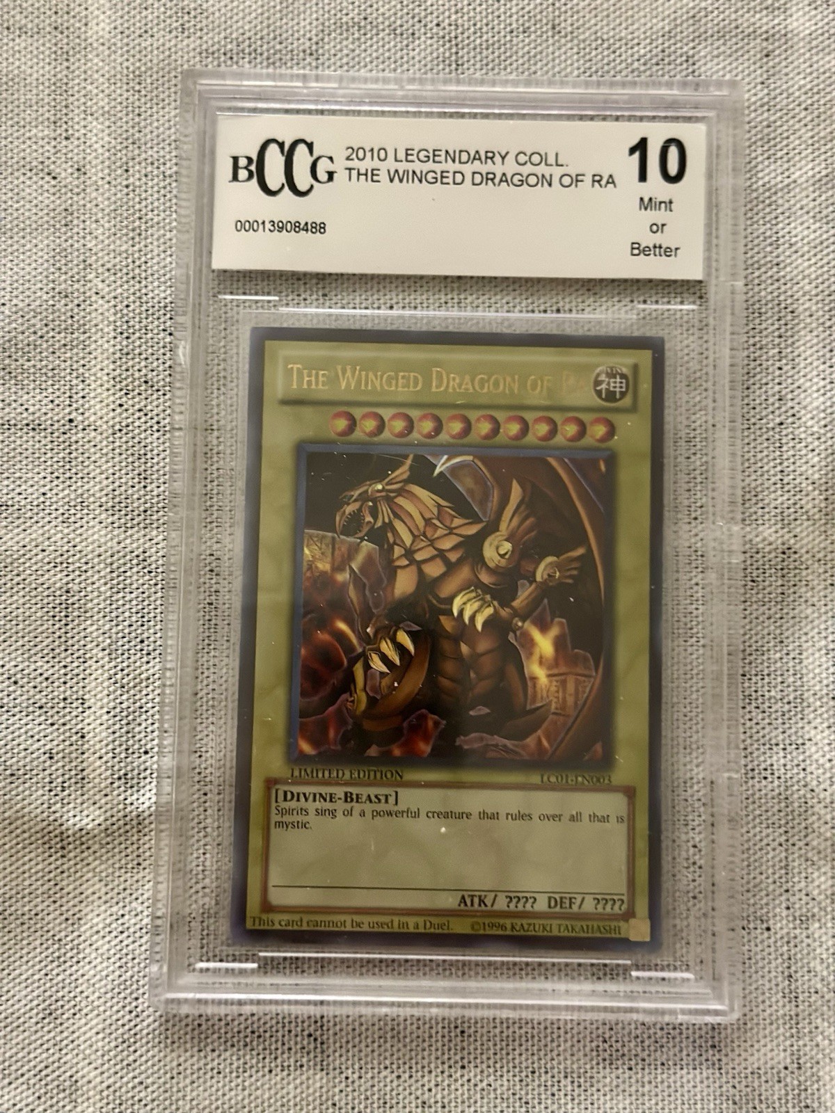 Beckett graded 10! 3 card lot 2010 legendary collection -Slifer The Sky Dragon (LC01-EN002) -The Winged Dragon of Ra (LC01-EN003) -Red Eyes B. Dragon (LC01-EN006) All slabs in excellent condition