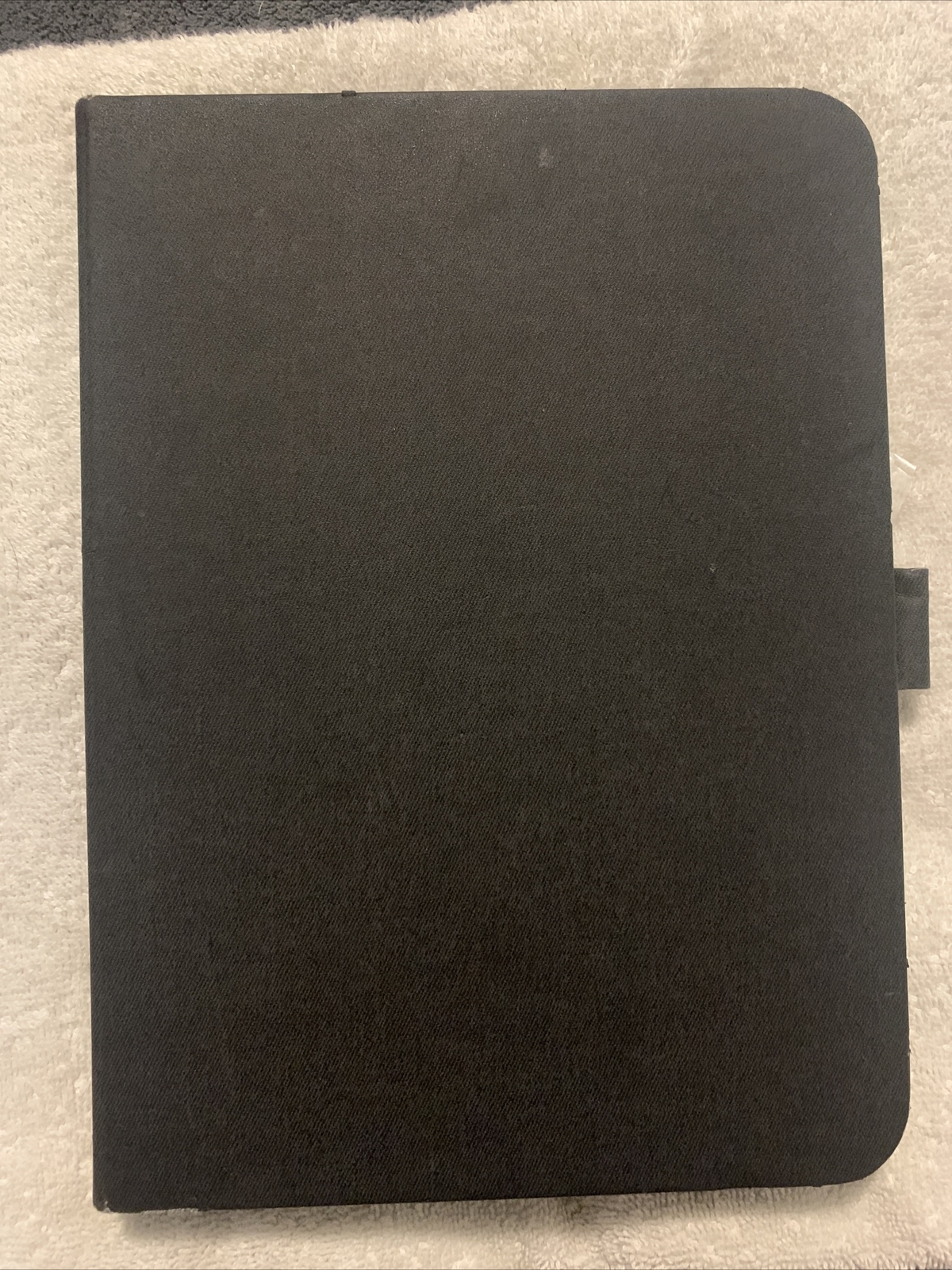This ZAGG Messenger Folio is a versatile keyboard folio and case designed for 9.7-inch iPads. It features a cable character and comes in black color. The folio is compatible with a range of Apple, Samsung, Microsoft, Sony, and Toshiba devices and has a variety of features, including Bluetooth connectivity, a smart case, an integrated stand, a pencil holder, and USB and battery power options. The folio is also designed with an integrated light, matte/anti-glare finish, and impact-resistant, anti-scratch, and shockproof materials for added protection. Has two smudge marks on top left and right corners
