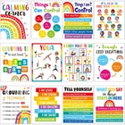 12pcs Colorful Calming Corner Classroom Poster Preschool Classroom Bulletin Board Feelings Chart for Kids Calm Down Corner Classroom Decorations Educational Therapy Posters for Wall Decor Package including: 12Pcs Calming Corner Classroom Poster Size: Calming Corner Classroom Poster:14 x 11 inches Material: Classroom Poster Sets are made of paper Application scenario:Office、Primary school、Kindergarten、Middle School、Pre school、Study room, Day care, Bulletin board, Learning center、Classroom This exquisite style classroom decorations can be matched with other decorations at will. They will make a atmosphere addition. Package contents: Our calming corner classroom poster sets includes 12 Sheets which calm corner art prints, with different themes that pay more attention on kids' mental health, great decoration for classroom. Convenient to use: The calming corner classroom poster sets measures about 14 x 11 inches , making them large enough to read the information without overcrowding. There are adhesive dots provided for you to stick on the calming corner classroom posters. Quality material: Our calming corner classroom poster sets are made of quality card, which is sturdy and reusable, non-toxic and can be kept for a long time. come with good printing patterns, looking so bright and vivid, easy to catch the eyes. Colorful Style: Calming corner classroom poster designed with assorted feeling charts, focusing on your feeling, emotions and how to challenge negative thoughts, giving you a simple therapy to cheer up yourself. Wide range of usages: The calming corner classroom poster great for school classroom wall, kindergarten, study room, day care, bulletin board, learning center, to enhance children's emotional regulation ability, also suitable for behavior therapy, special education and other needs.